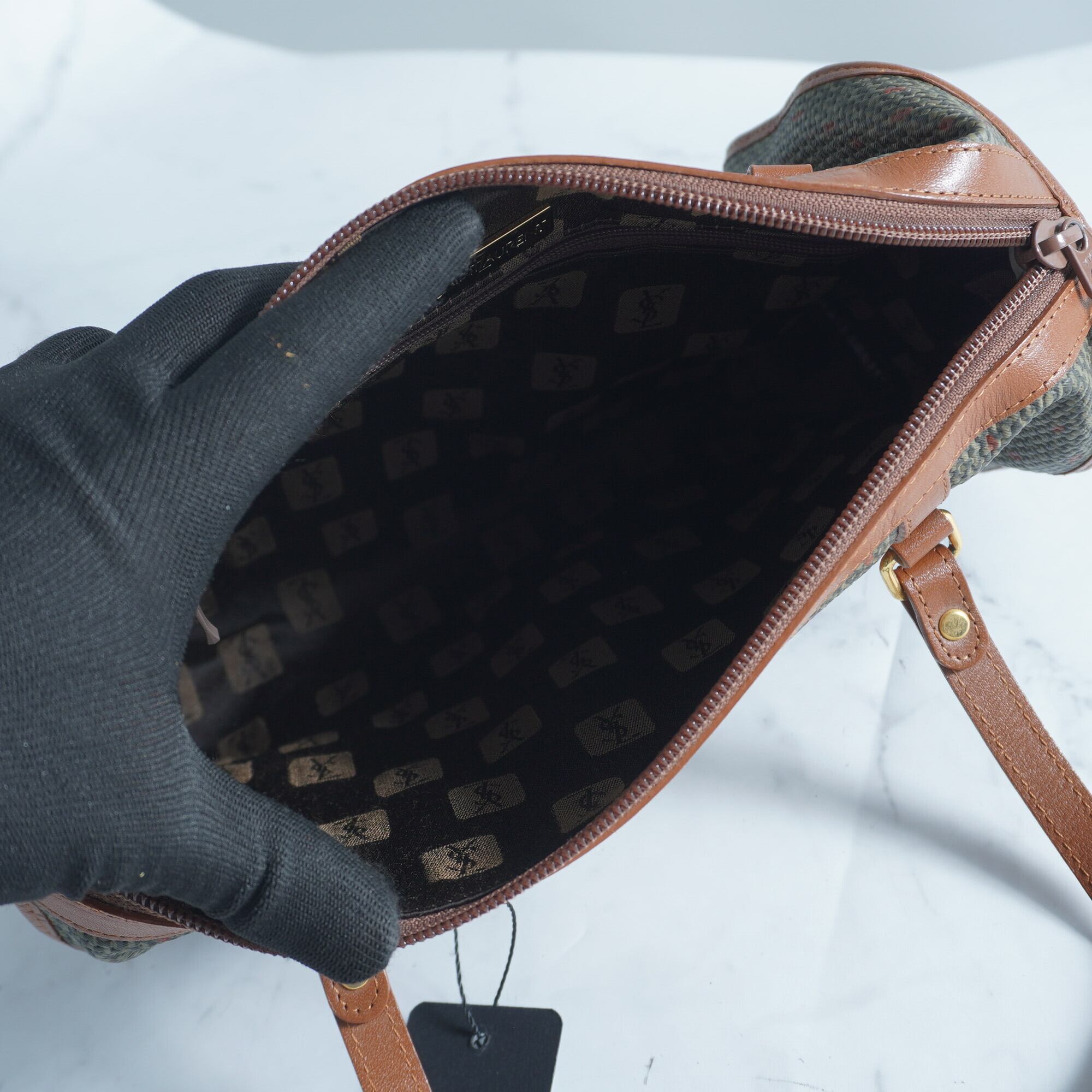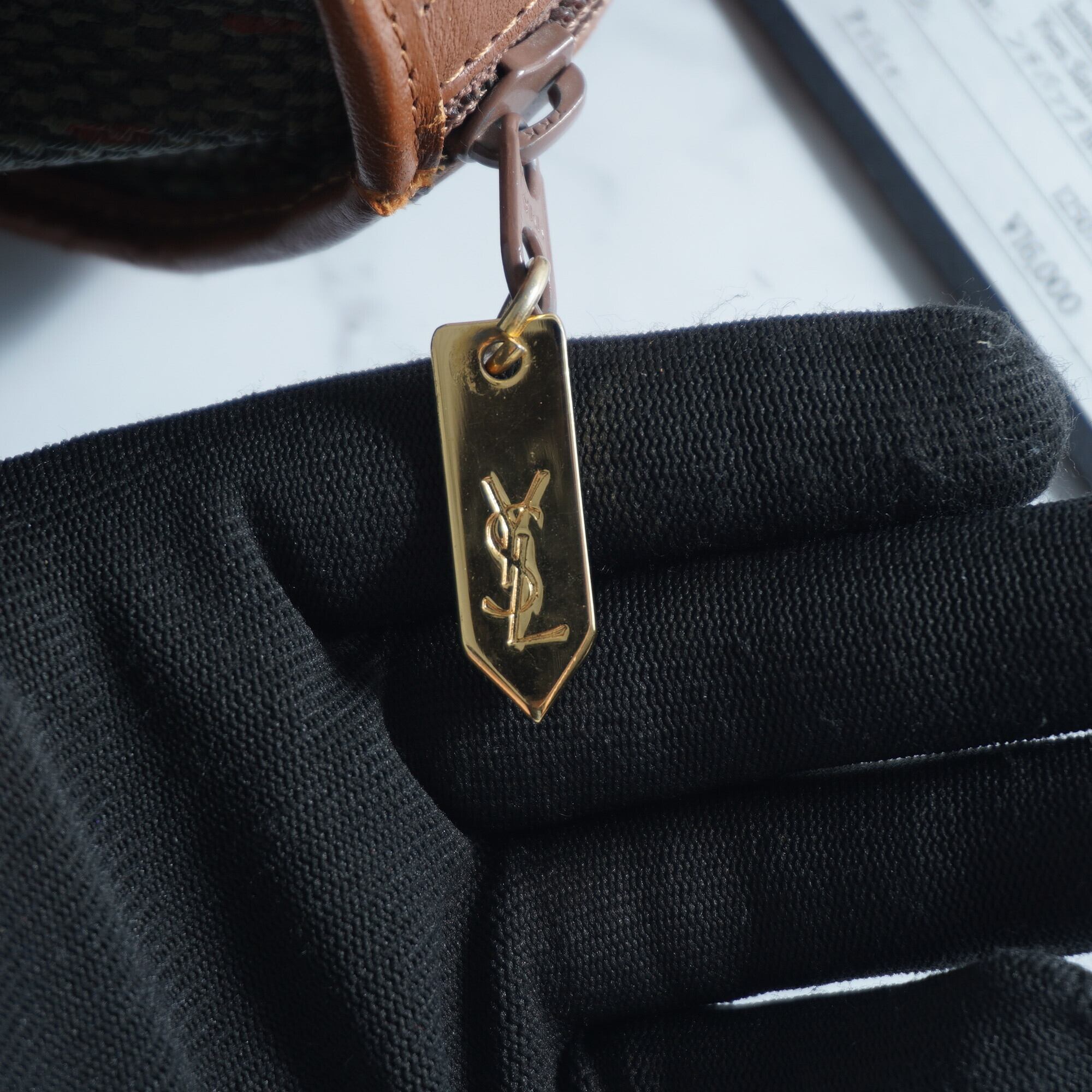 【Yves Saint Laurent】イブサンローラン "YSLロゴ" レザーハンドバッグ brown