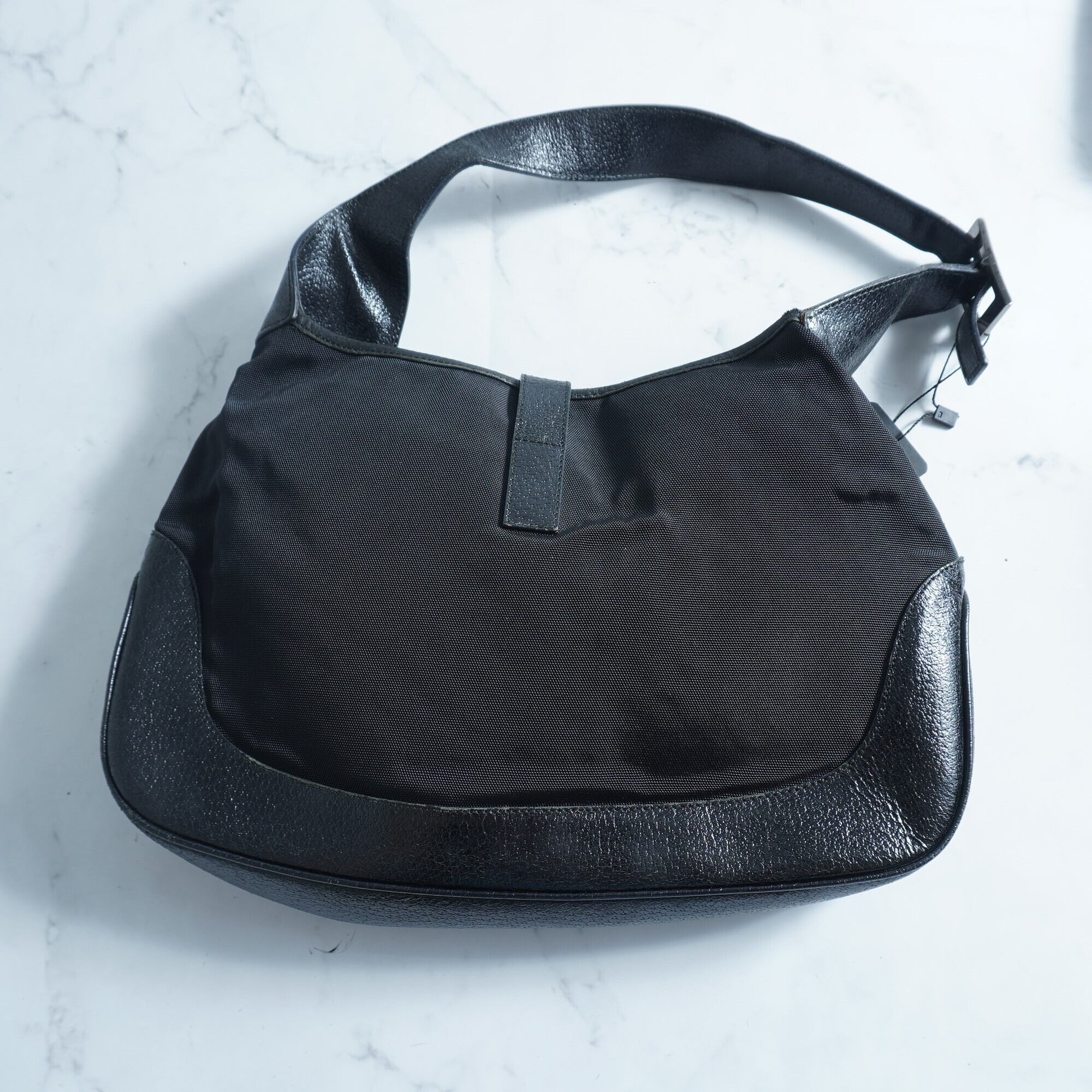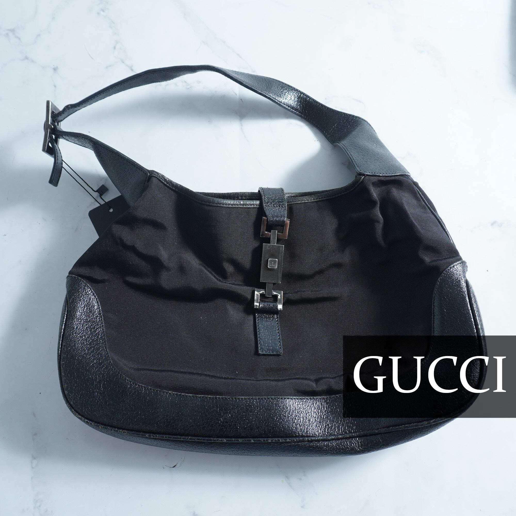 【GUCCI】グッチ "ロゴ入" レザー切替 ハンドショルダーバッグ black