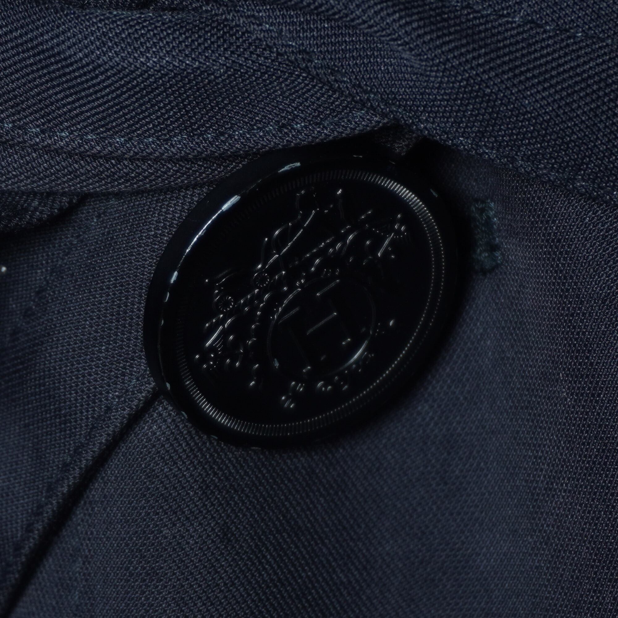 【HERMES】エルメス フランス製 90's vintage コットン×ポリ "Hロゴメタルロゴ" 刻印 トレンチコート black