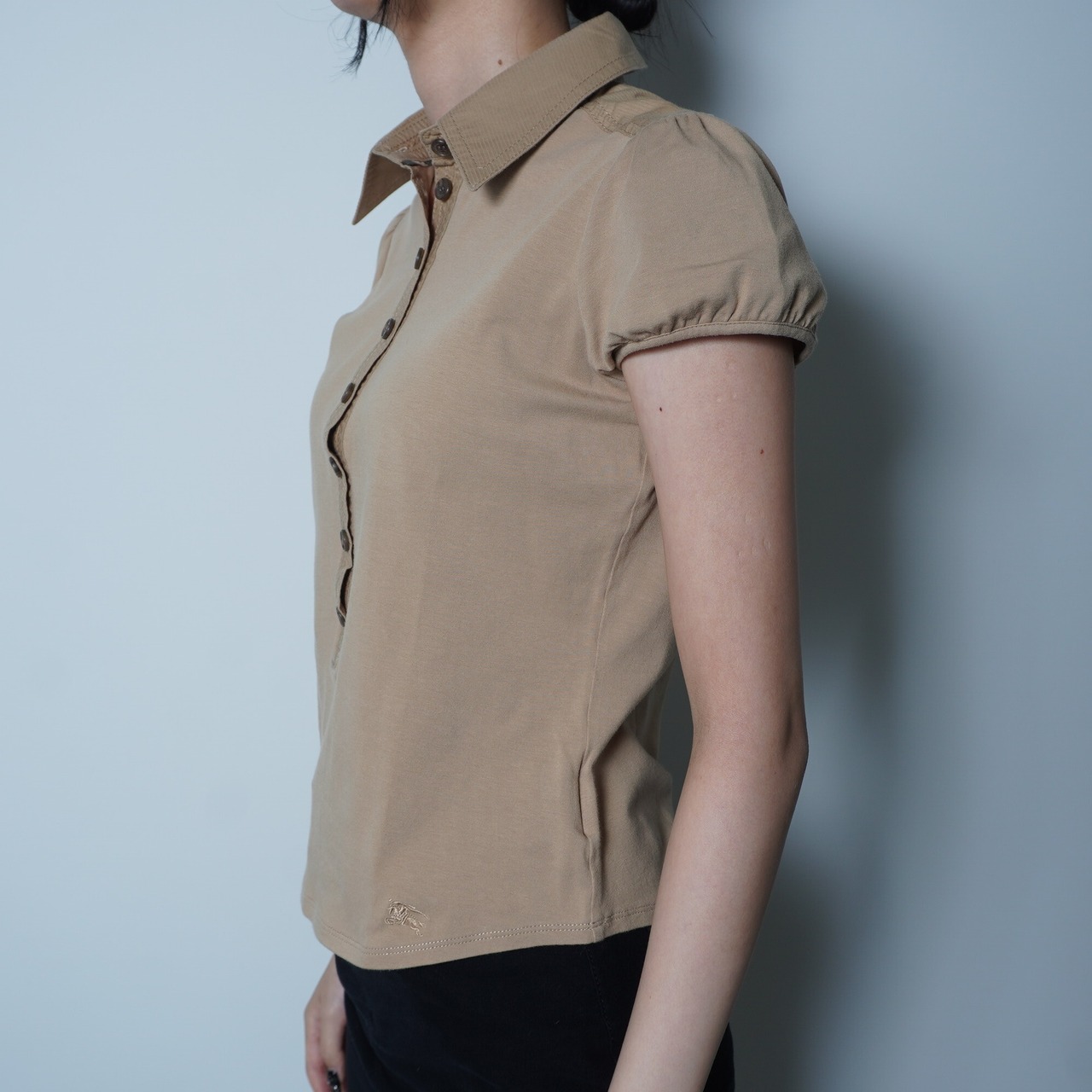 【BURBERRY】バーバリー "ホースロゴ刺繍”襟付きカットソー beige