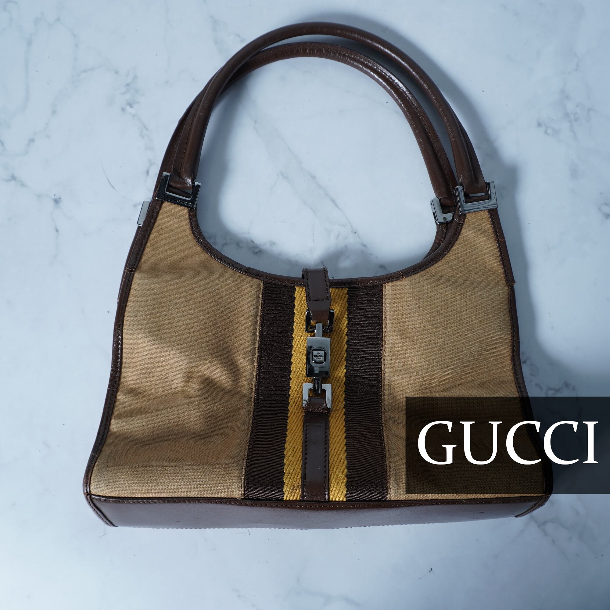 【GUCCI】グッチ ”シェリーライン”ジャッキーハンドバッグ light brown&brown