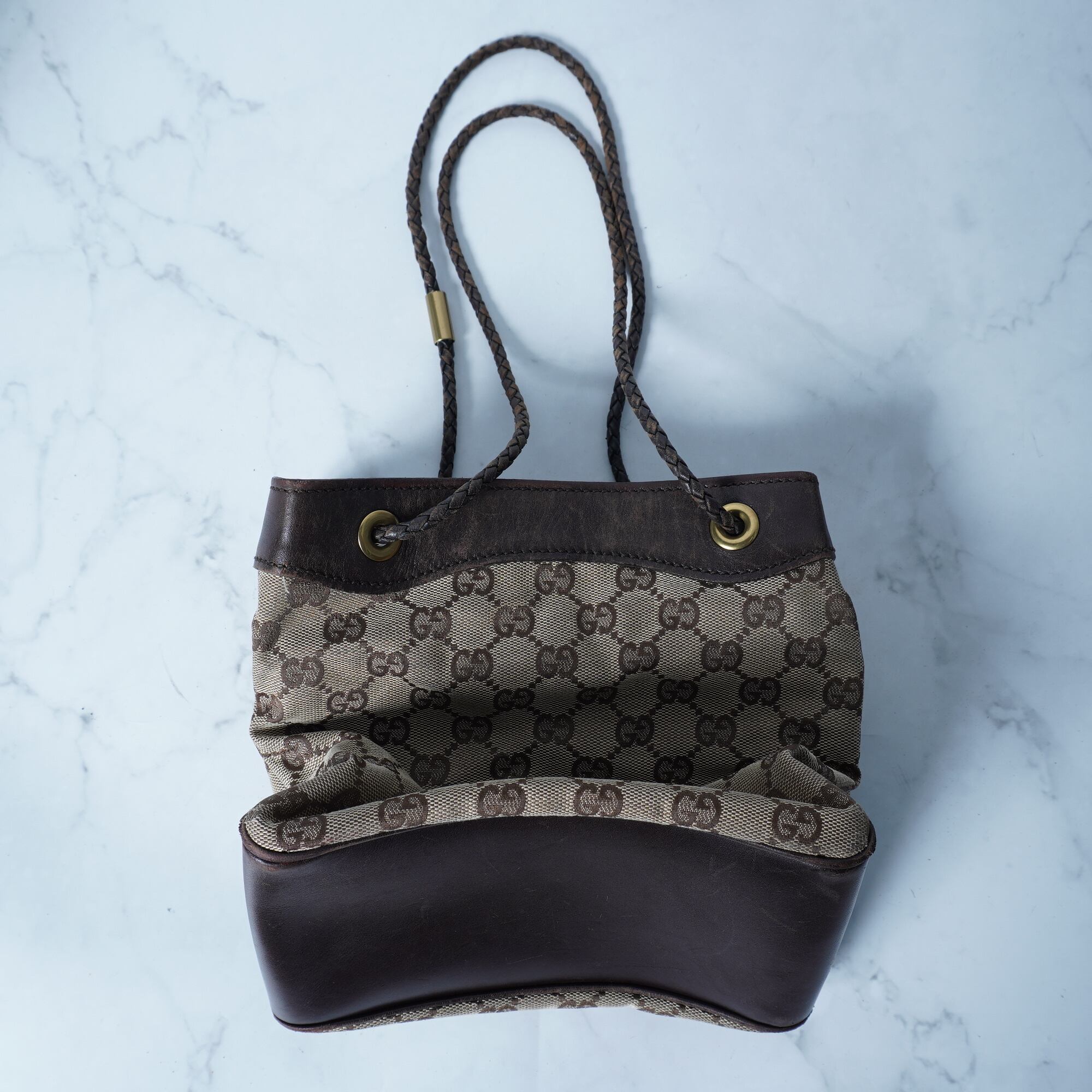 【GUCCI】グッチ”GG柄”レザー切替ハンドバッグ light brown