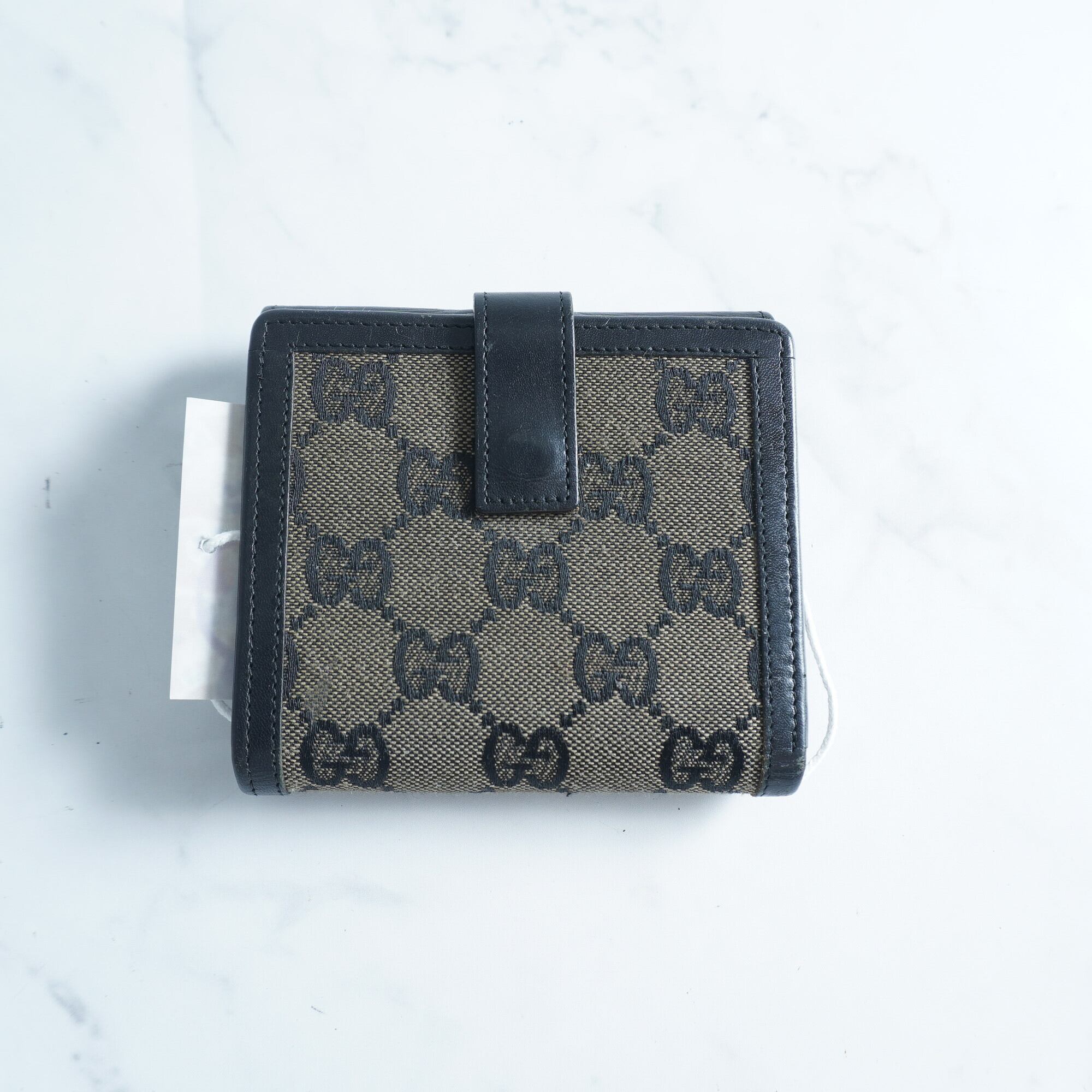 【GUCCI】グッチ GGモノグラム キャンバスレザー切替プレートデザインコンパクト財布