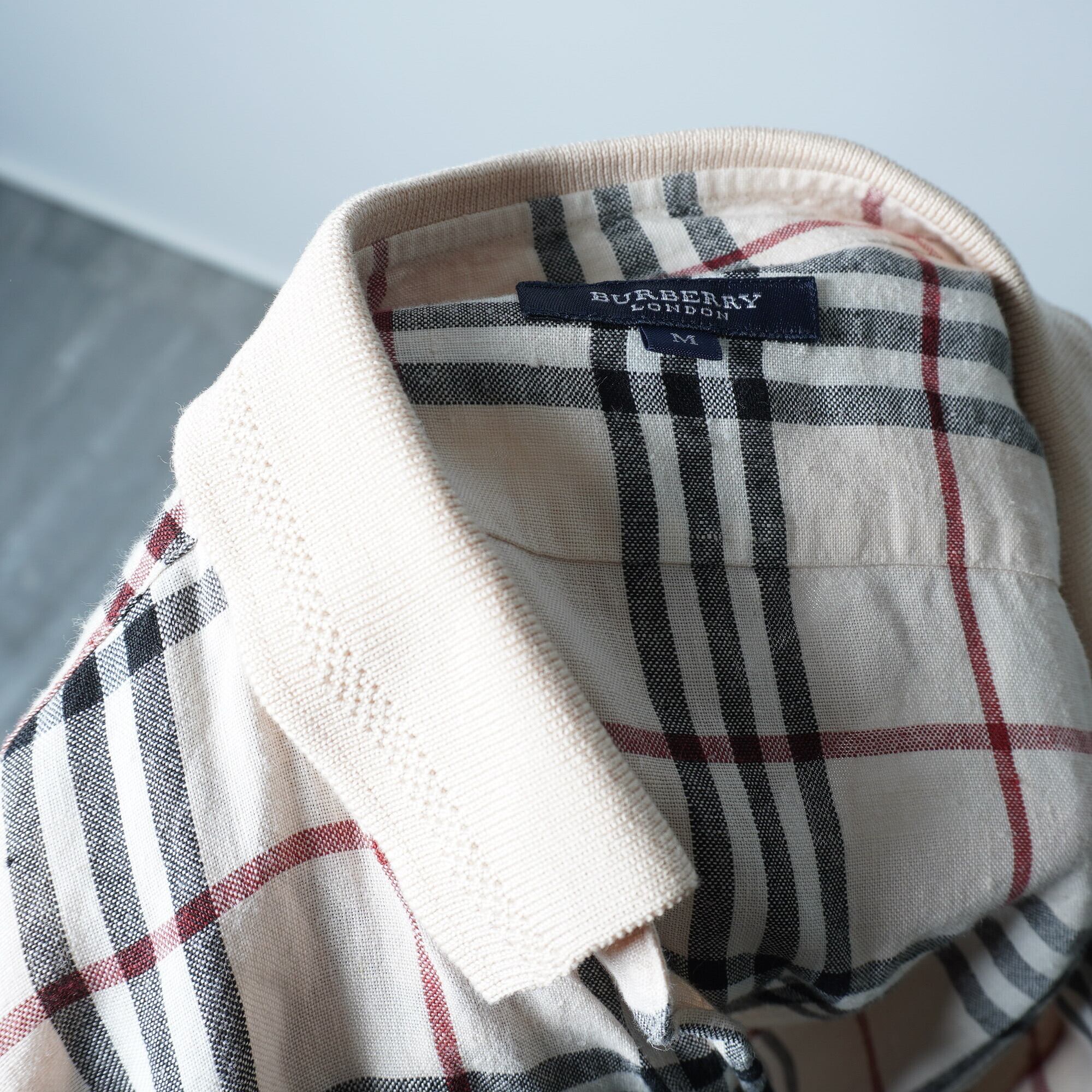 【BURBERRY】バーバリー "ノバチェック"ホースロゴ刺繍リネンシャツ beige