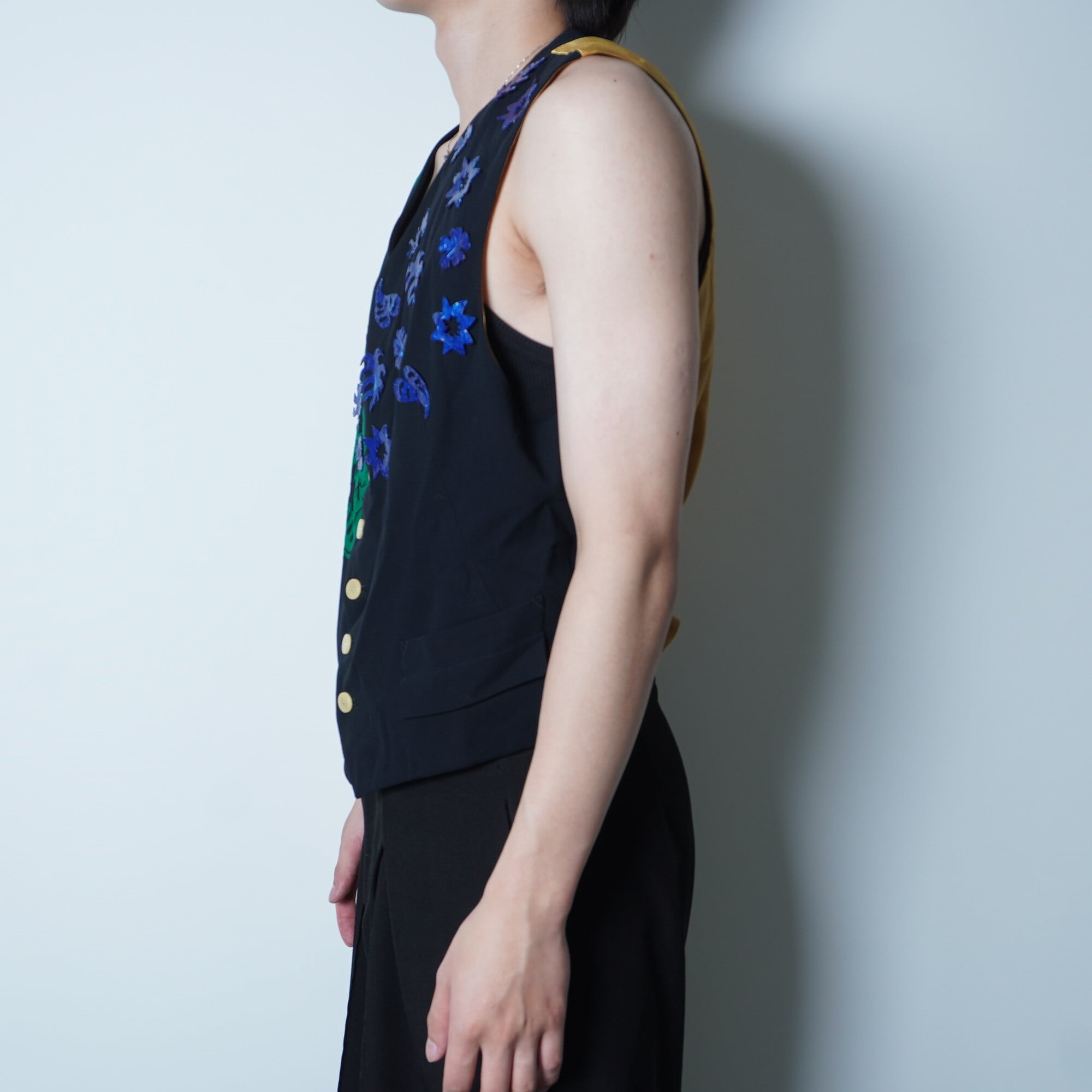 【Jean Paul GAULTIER HOMME】ジャンポールゴルチエ"Archive"ハイビスカス モチーフベスト black&green&blue