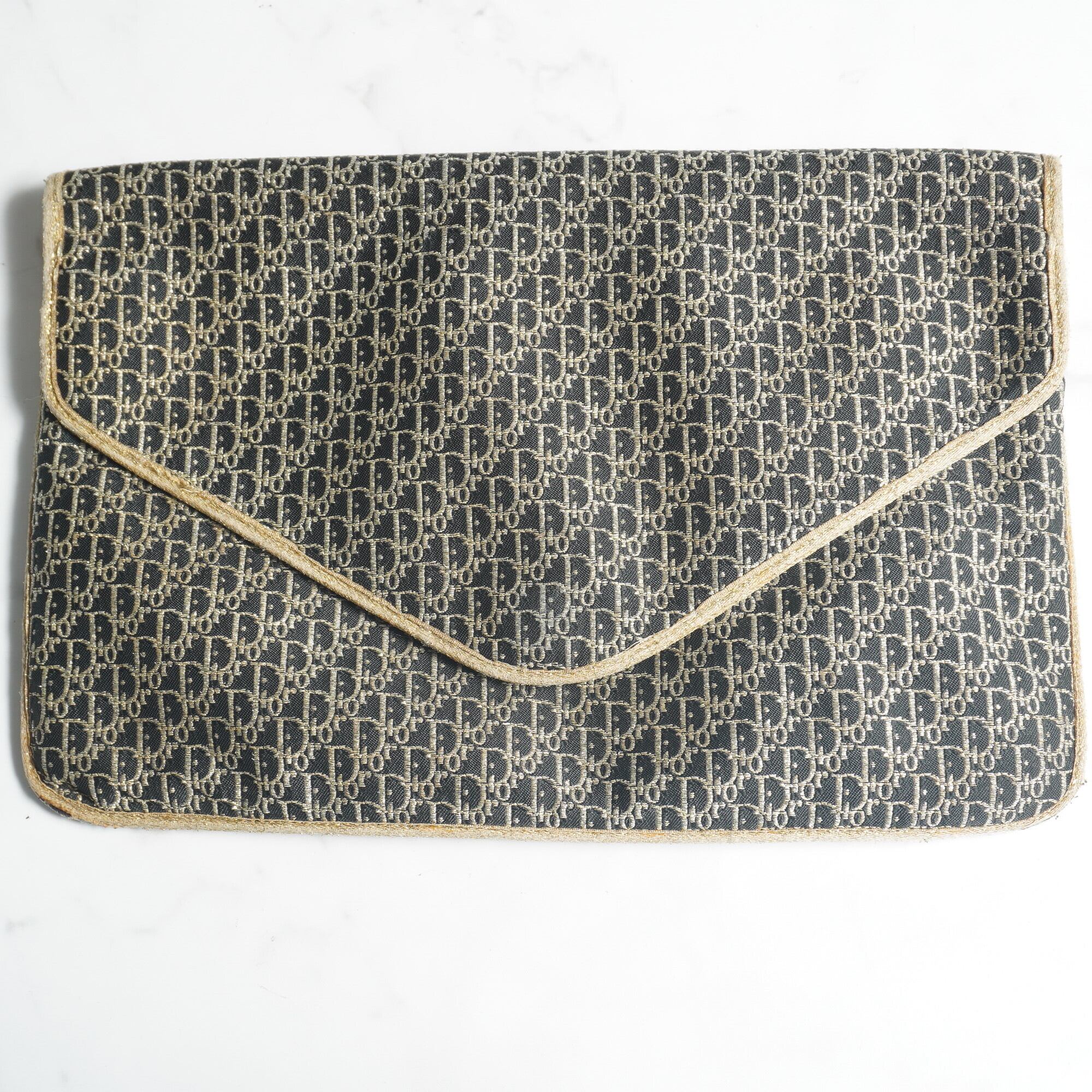 【Christian Dior】クリスチャンディオール トロッターパターン ラメ糸 パイピングスナップポーチ