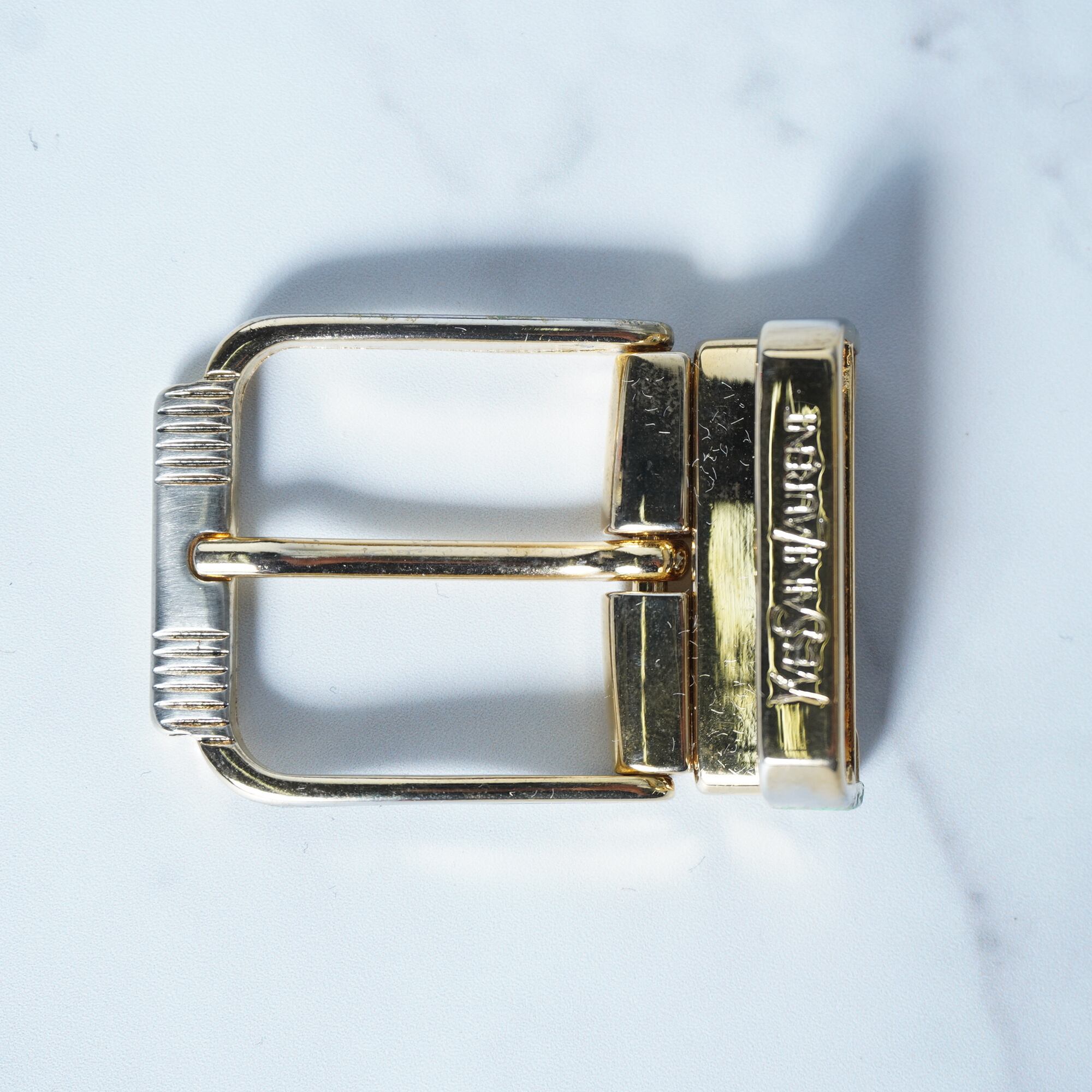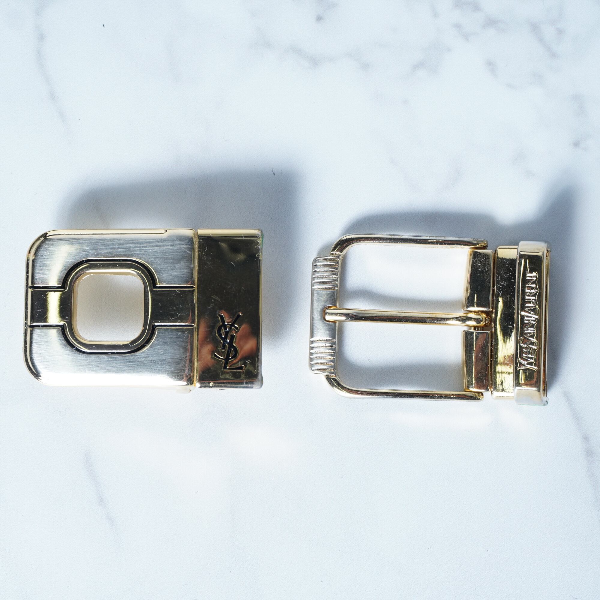 【Yves Saint Laurent】イヴサンローラン"2バックル"ロゴ入ゴールドバックルレザーベルトセットblack