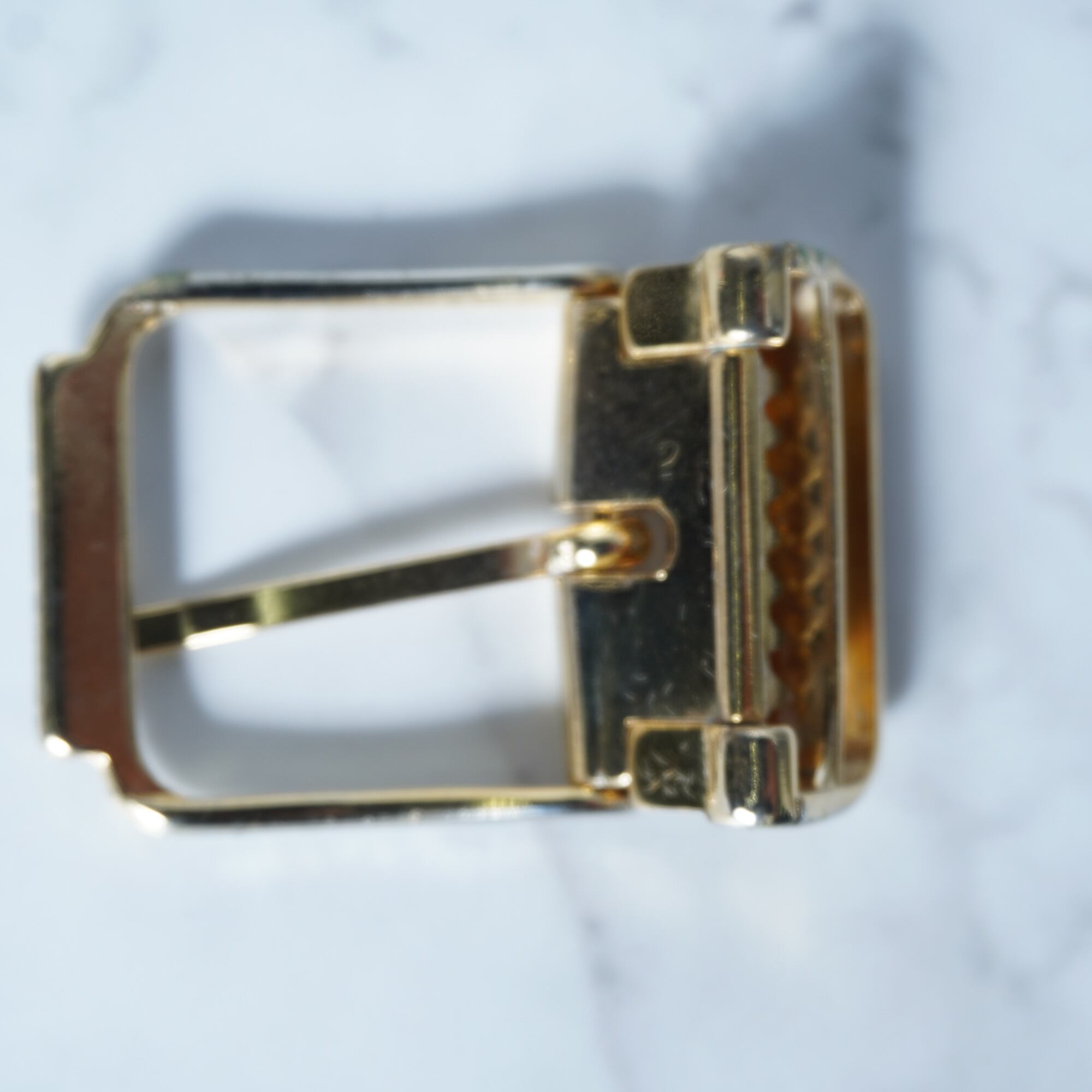 ・目を惹くゴールドカラーのバックル