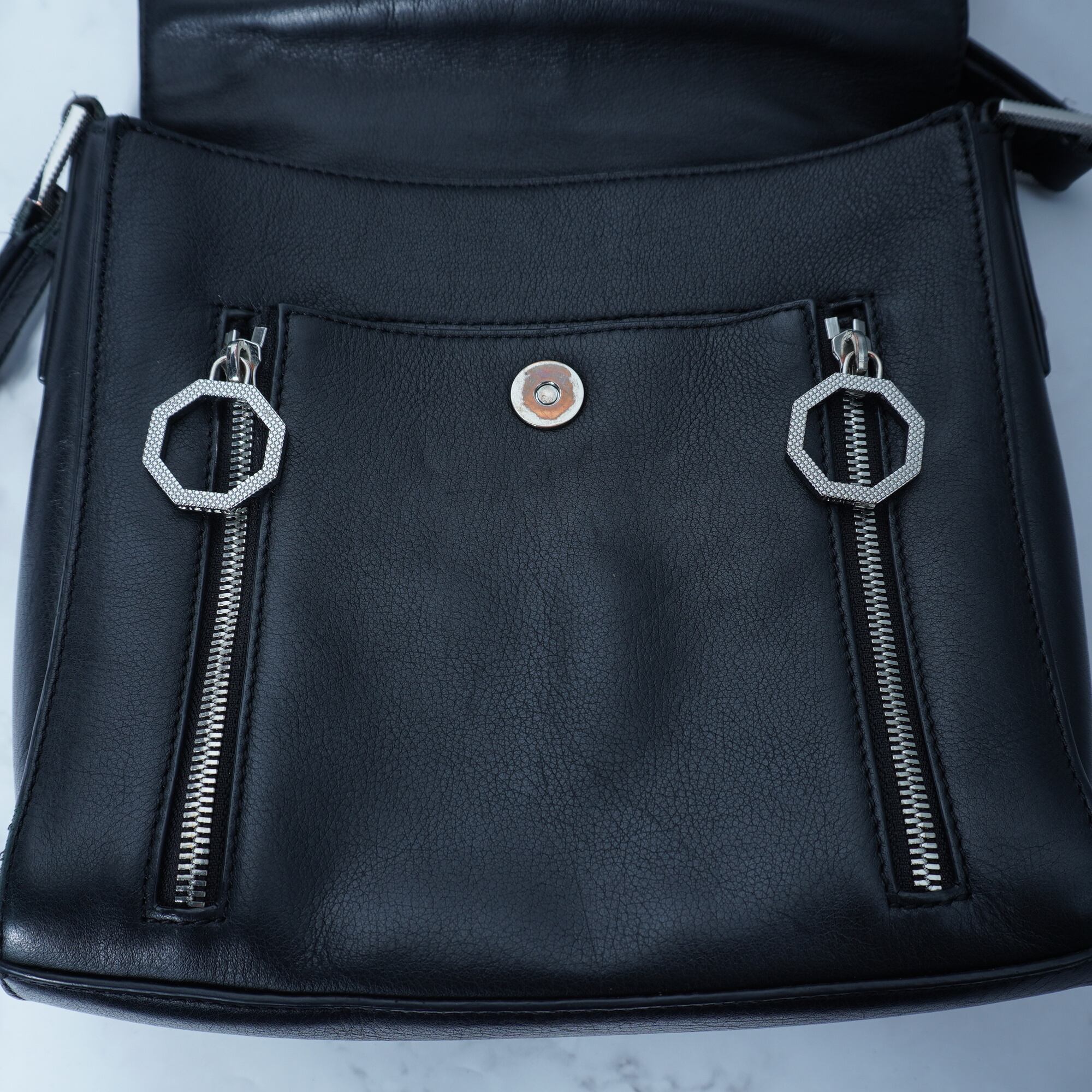【DIESEL】ディーゼル ジッパーポケットデザインレザーショルダーバッグ black