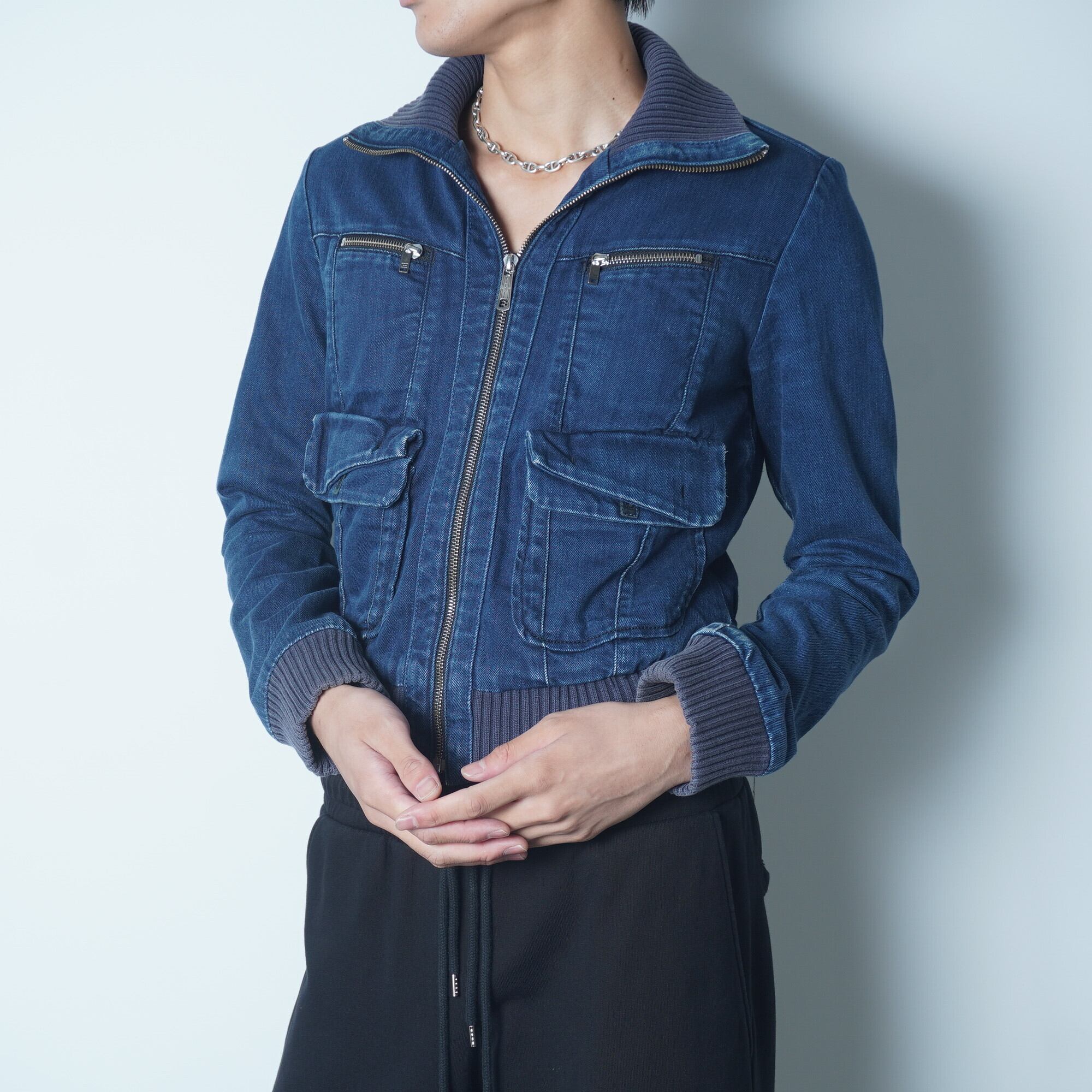 【DIESEL】ディーゼル ジップアップリブニット切替デニム裏ボアジャケット indigo