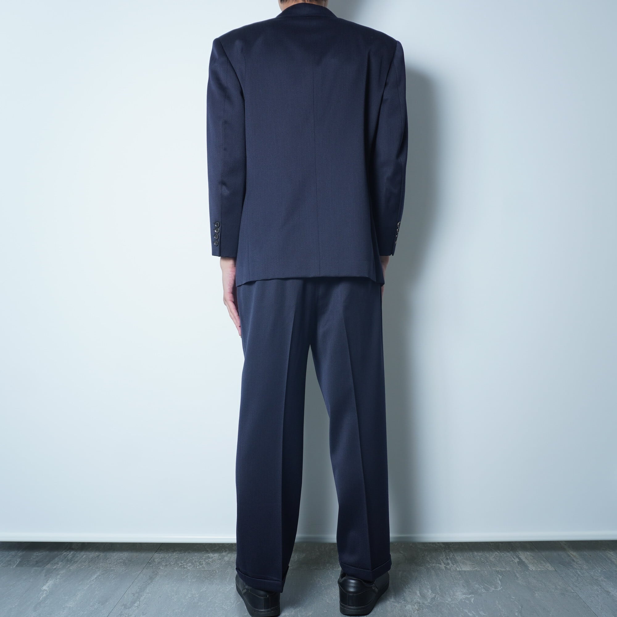【Christian Dior】クリスチャンディオール ウール100% シャドーストライプ美光沢 ダブルセットアップスーツ dark navy