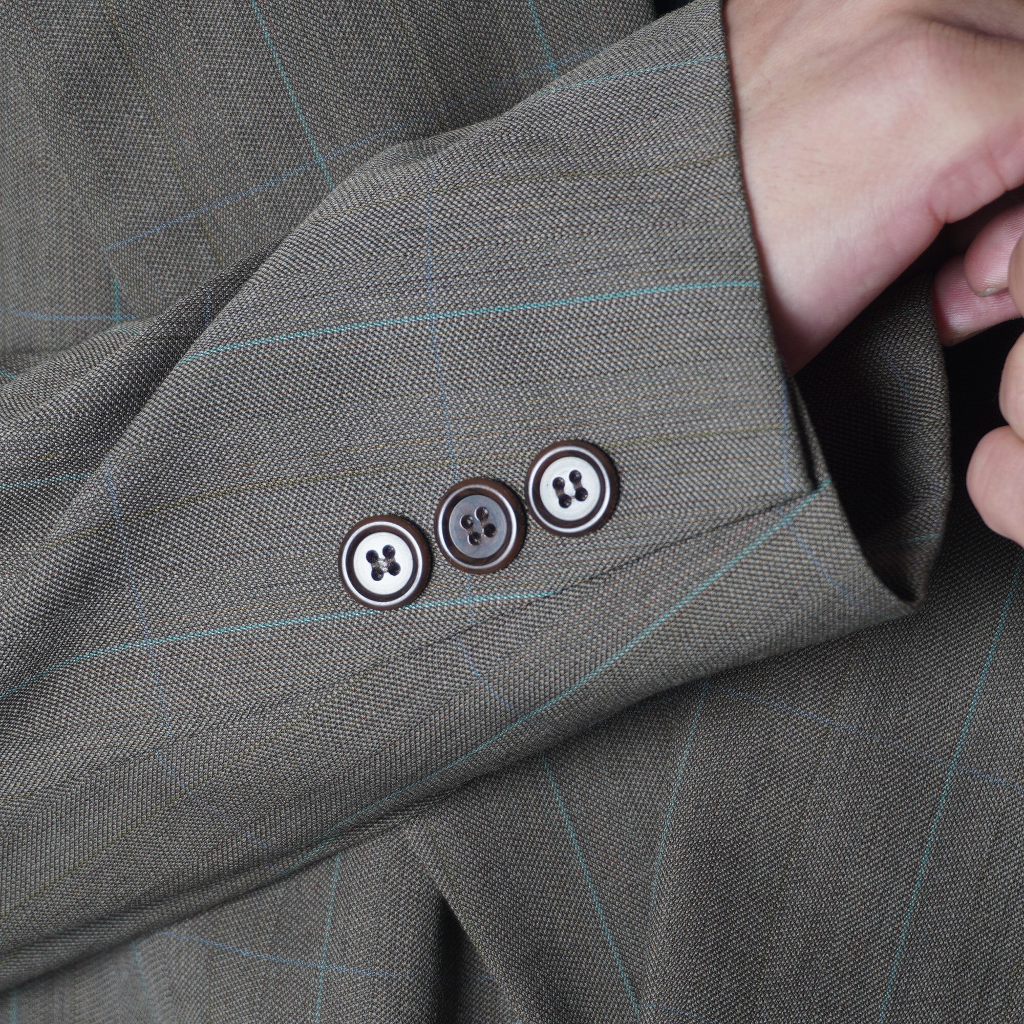 【Christian Dior】クリスチャンディオール ウール×ポリ 美光沢ブロックチェック ダブルセットアップスーツ