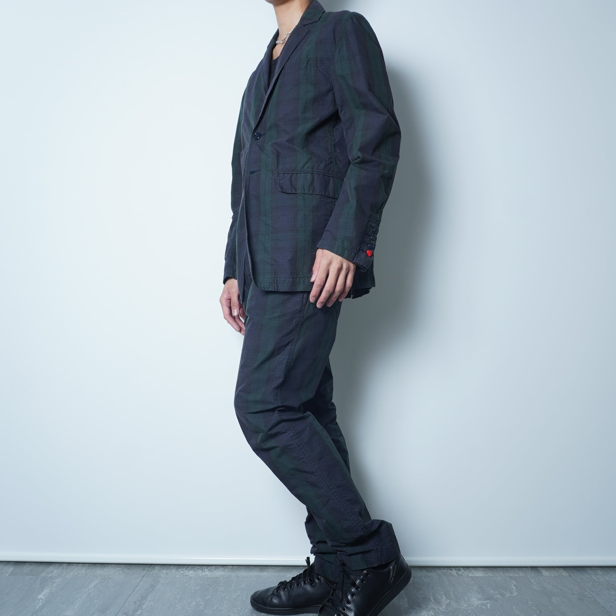 【HUMAN MADE】ヒューマンメイド オツモタグ コットン×ナイロン チェックセットアップスーツ green