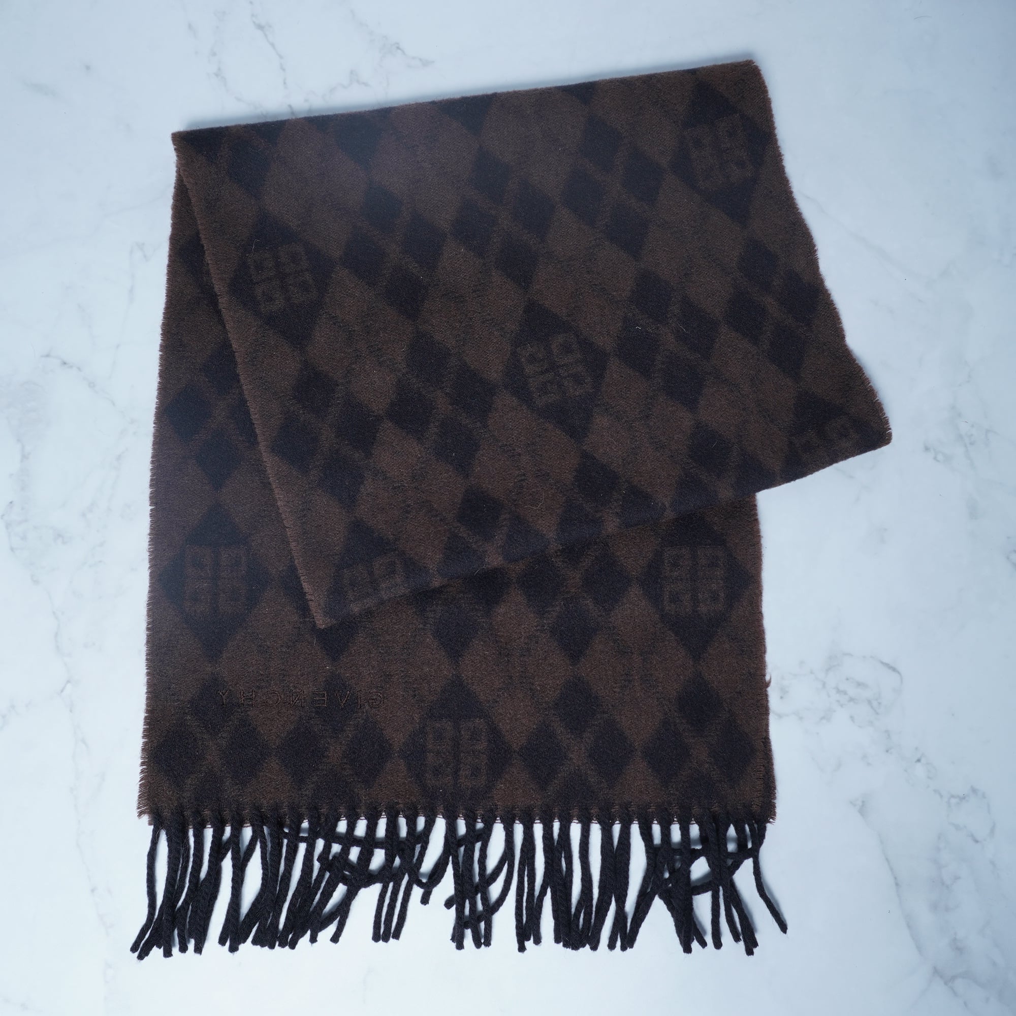 【GIVENCHY】ジバンシー "CASHMERE100%"4Gロゴマフラー brown&black