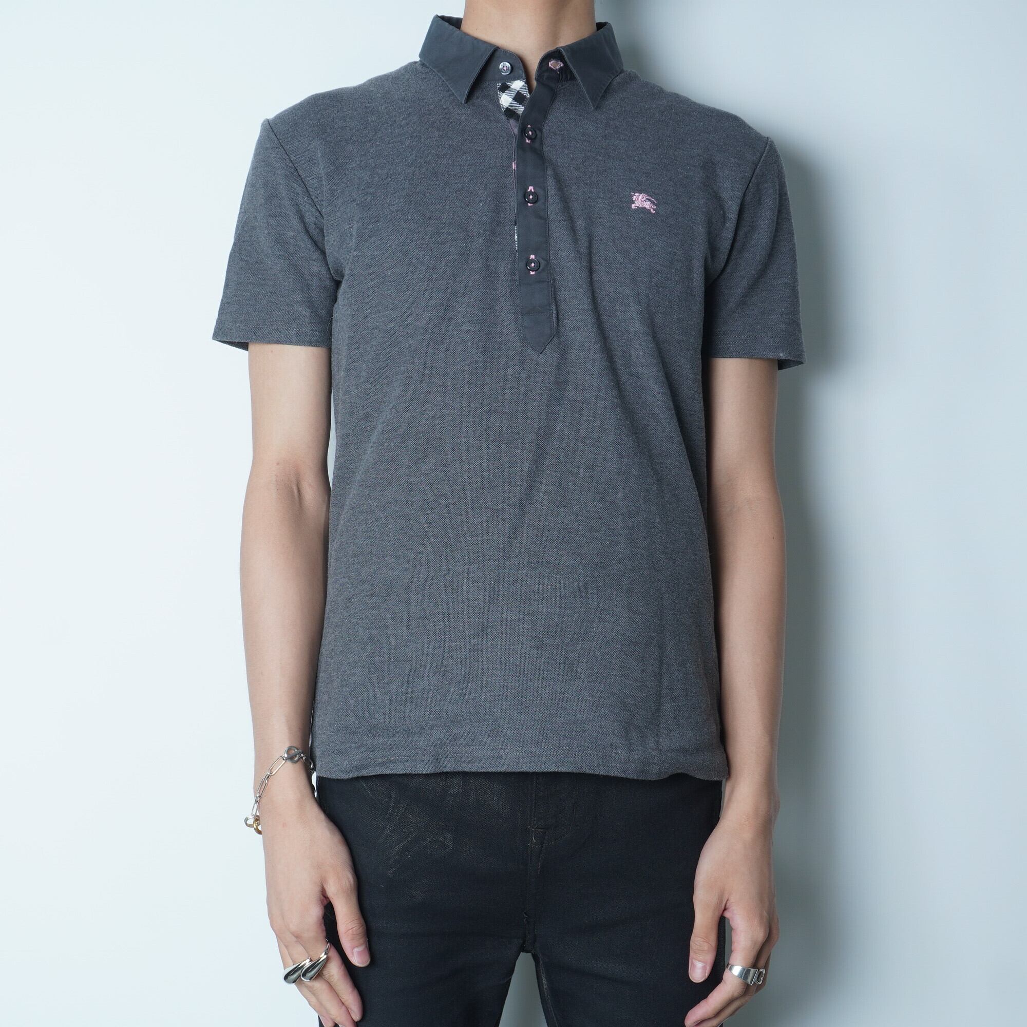 【BURBERRY】バーバリー ブラックレーベル ホース刺繍デザイン襟切替ポロ gray