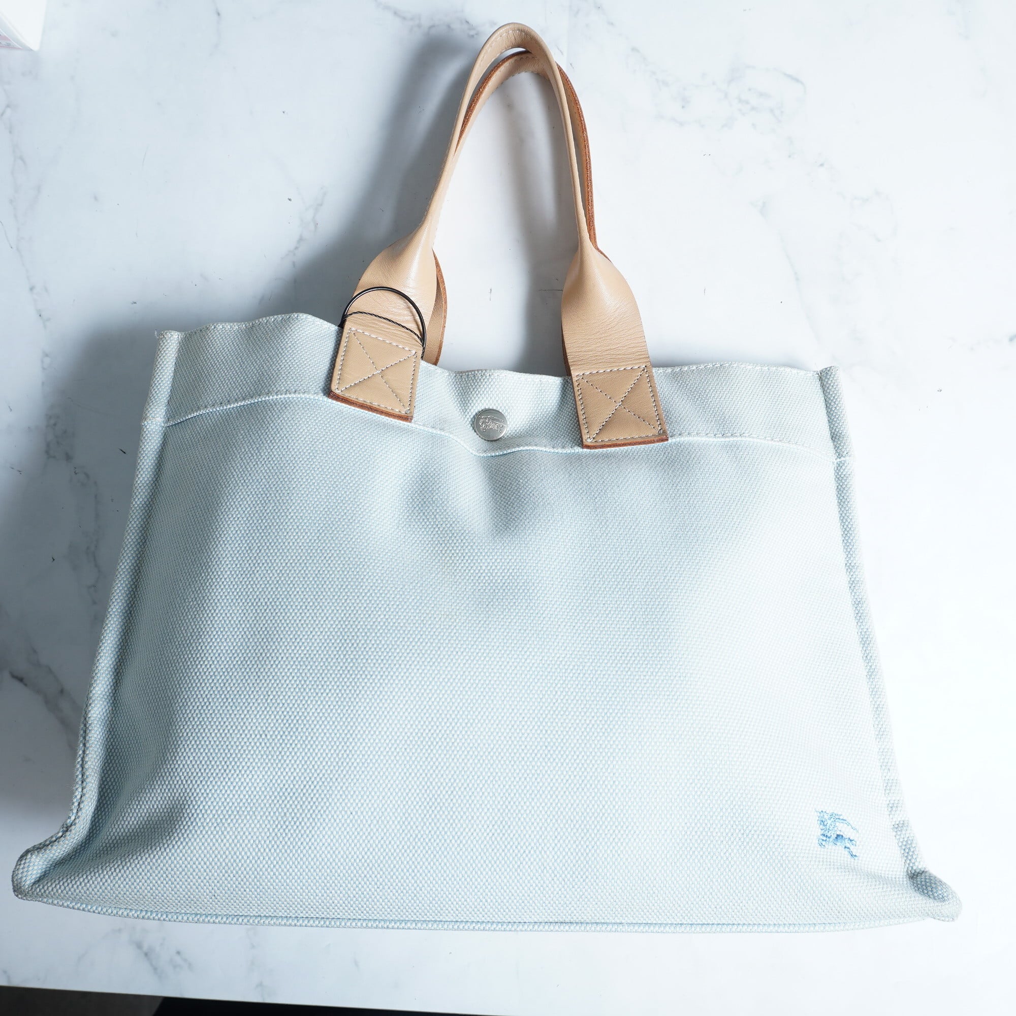 【BUEBERRY BLUE LABEL】バーバリー ブルーレーベル "ARCHIVES" 帆布キャンバス × レザーハンドバッグ blue