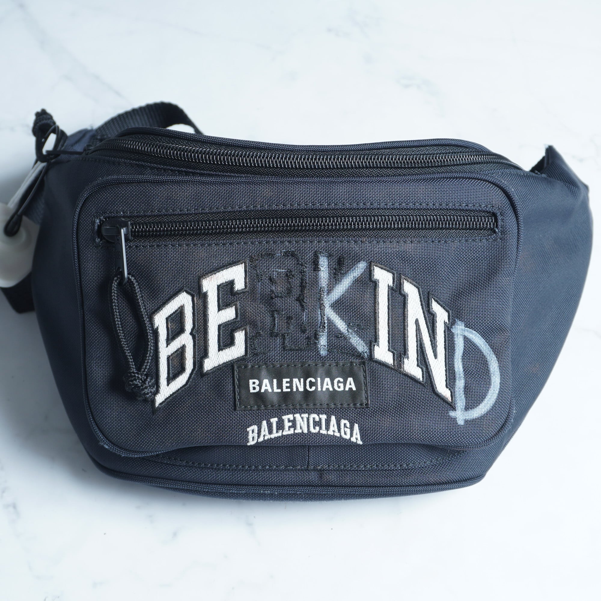 ・印象的なデザインが目を引く【BALENCIAGA】バレンシアガ "BE KIND" Explorer ロゴ刺繍ショルダーバッグ