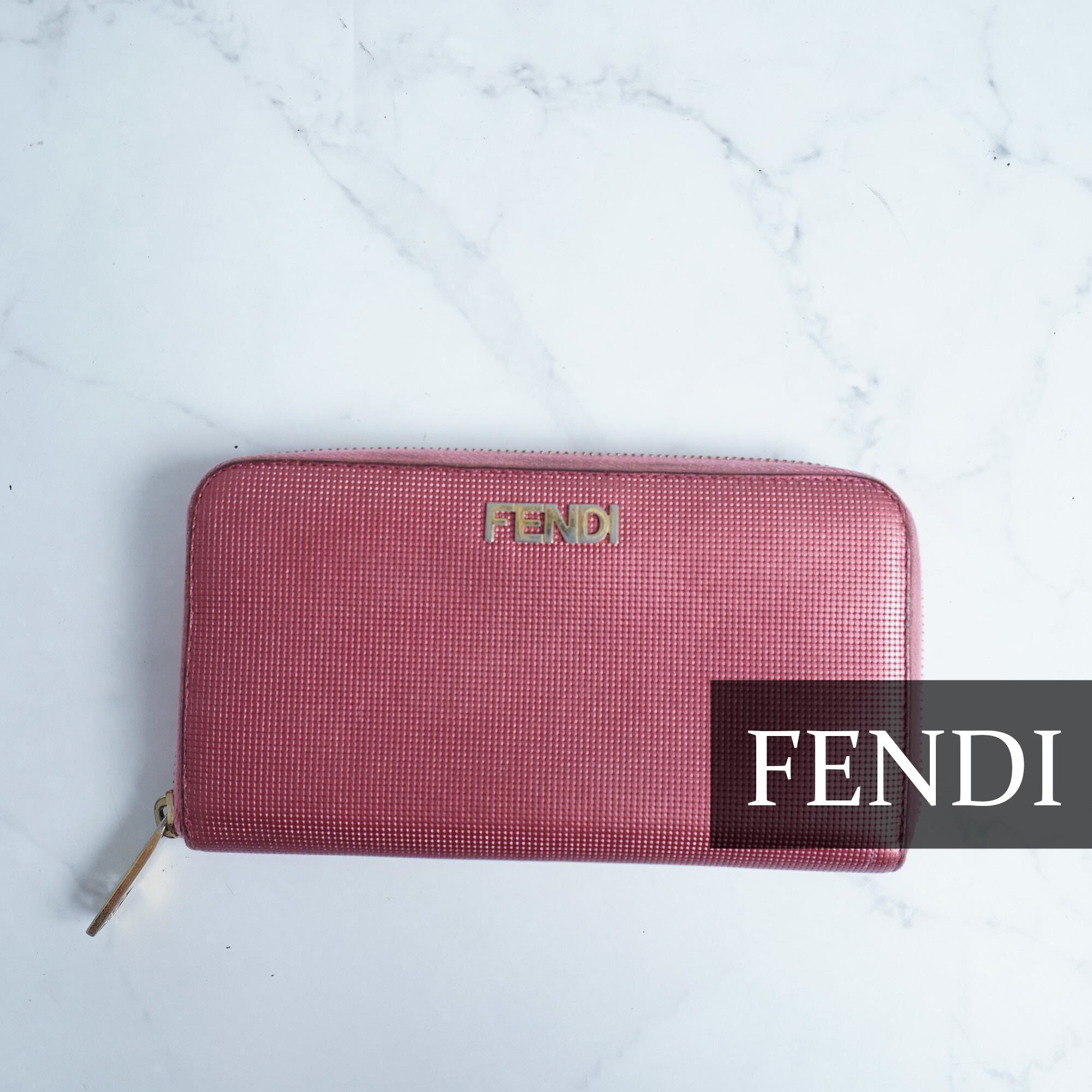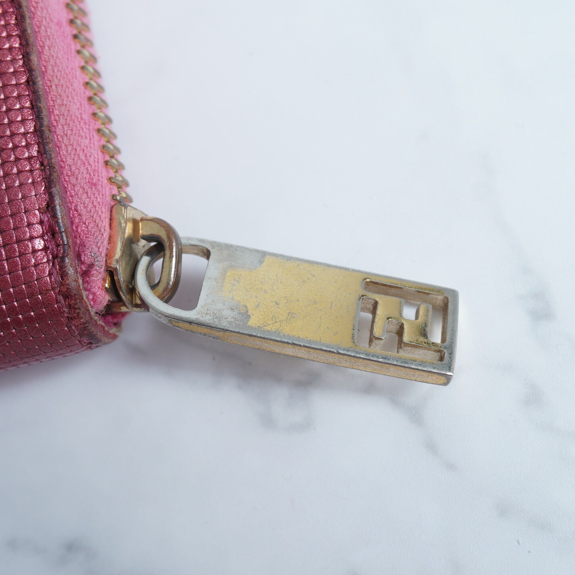 【FENDI】フェンディ ロゴモチーフラウンドジップ長財布 pink
