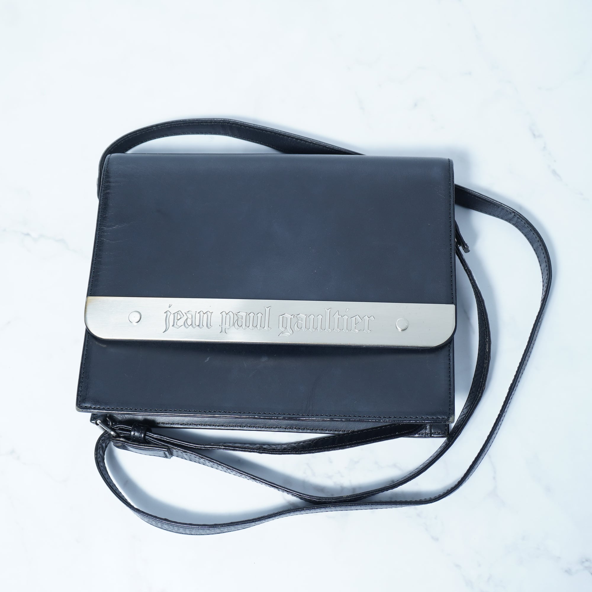 【Jean Paul Gaultier】ジャンポールゴルチエ "ARCHIVE" メタルロゴ入レザーショルダーバッグ black