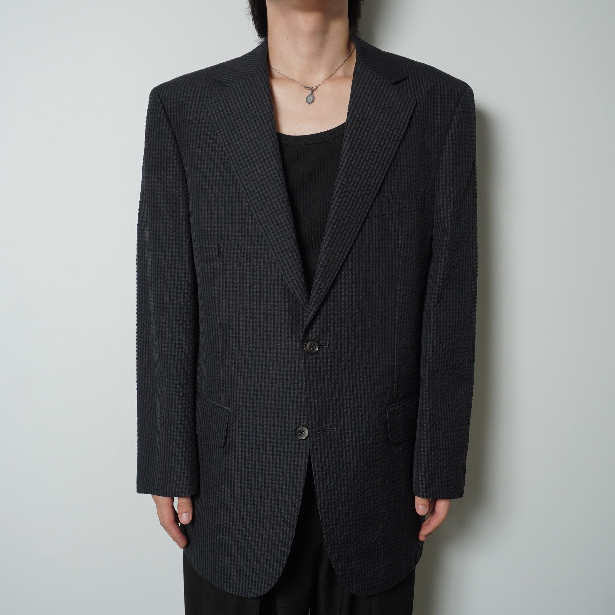 【BURBERRY】バーバリー "SILK混"2Bチェックテーラードジャケット navy&black
