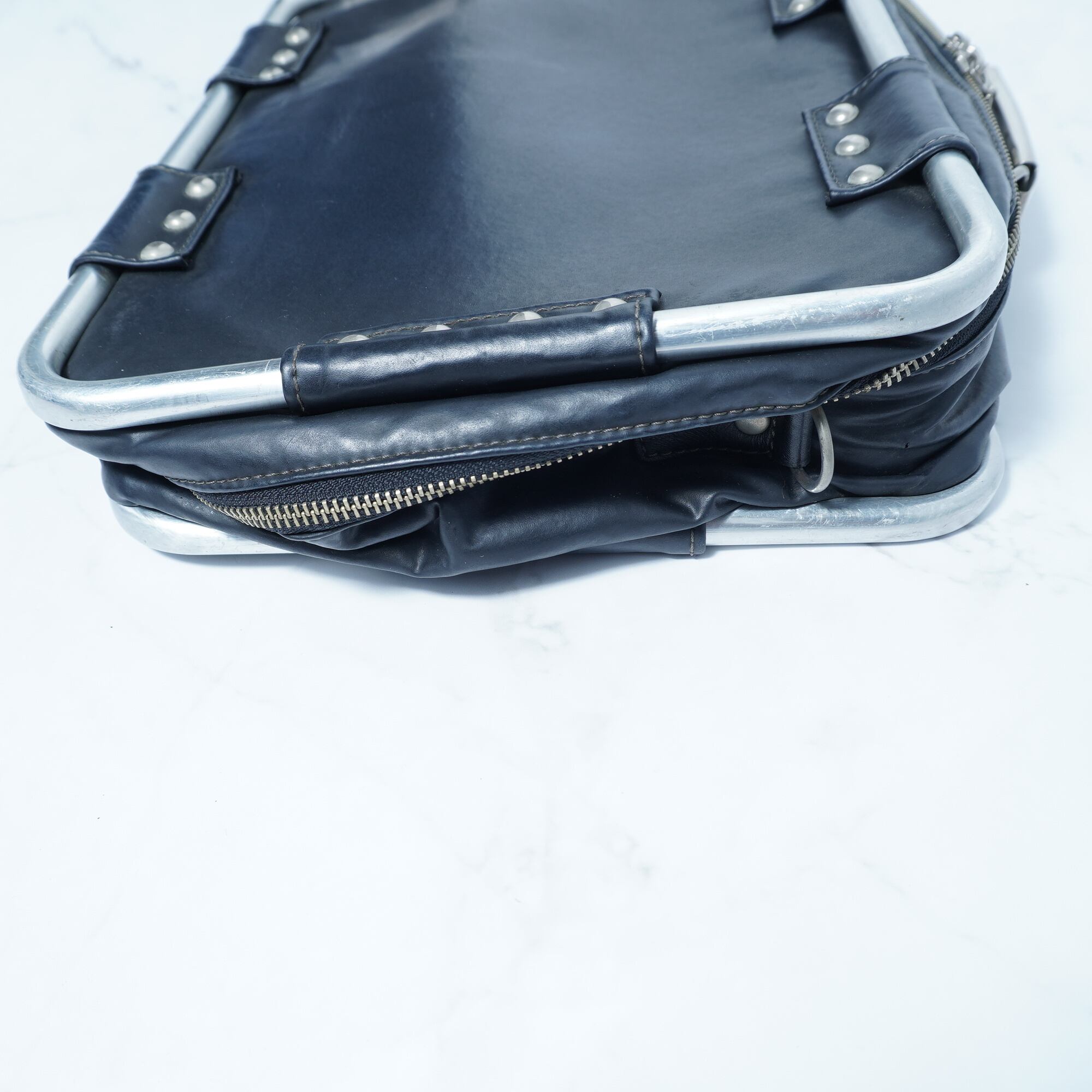 【Jean Paul GAULTIER】ジャンポールゴルチエ "ARCHIVE" ロゴ入メタルフレーム2WAYレザーショルダーバッグ black