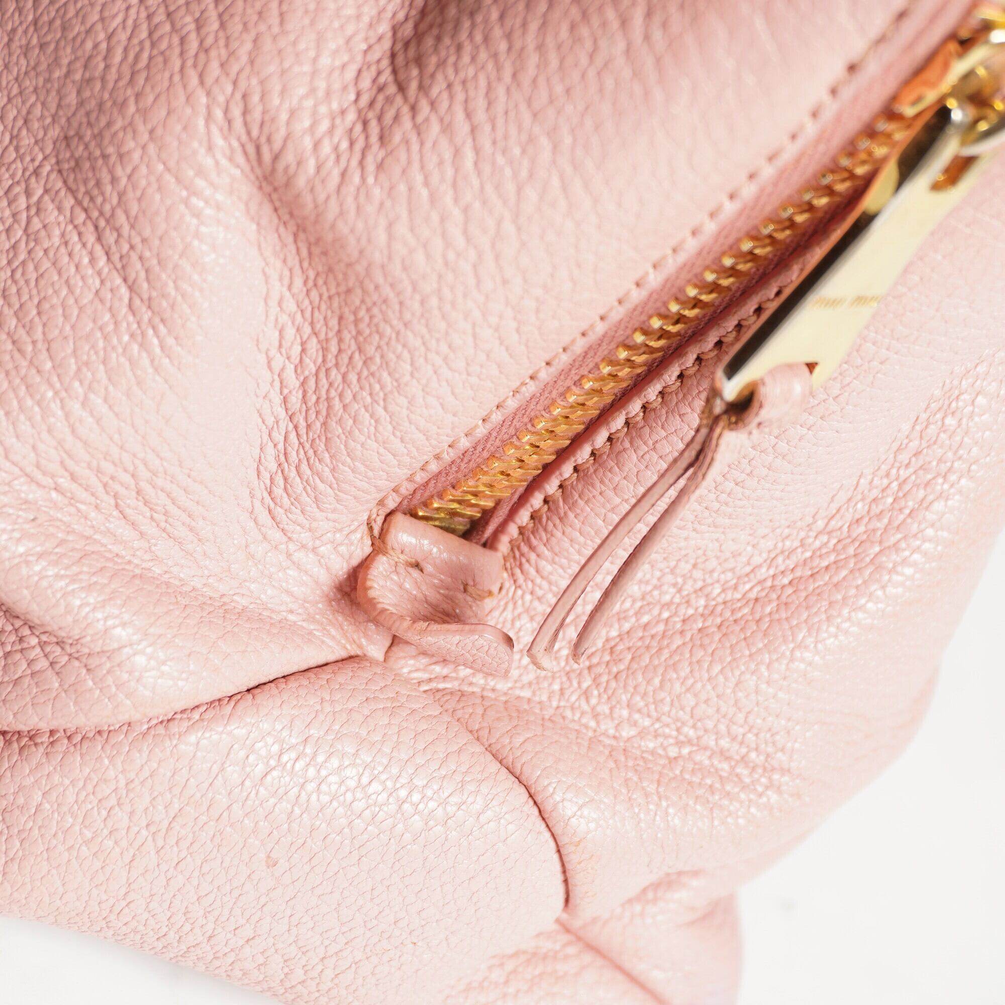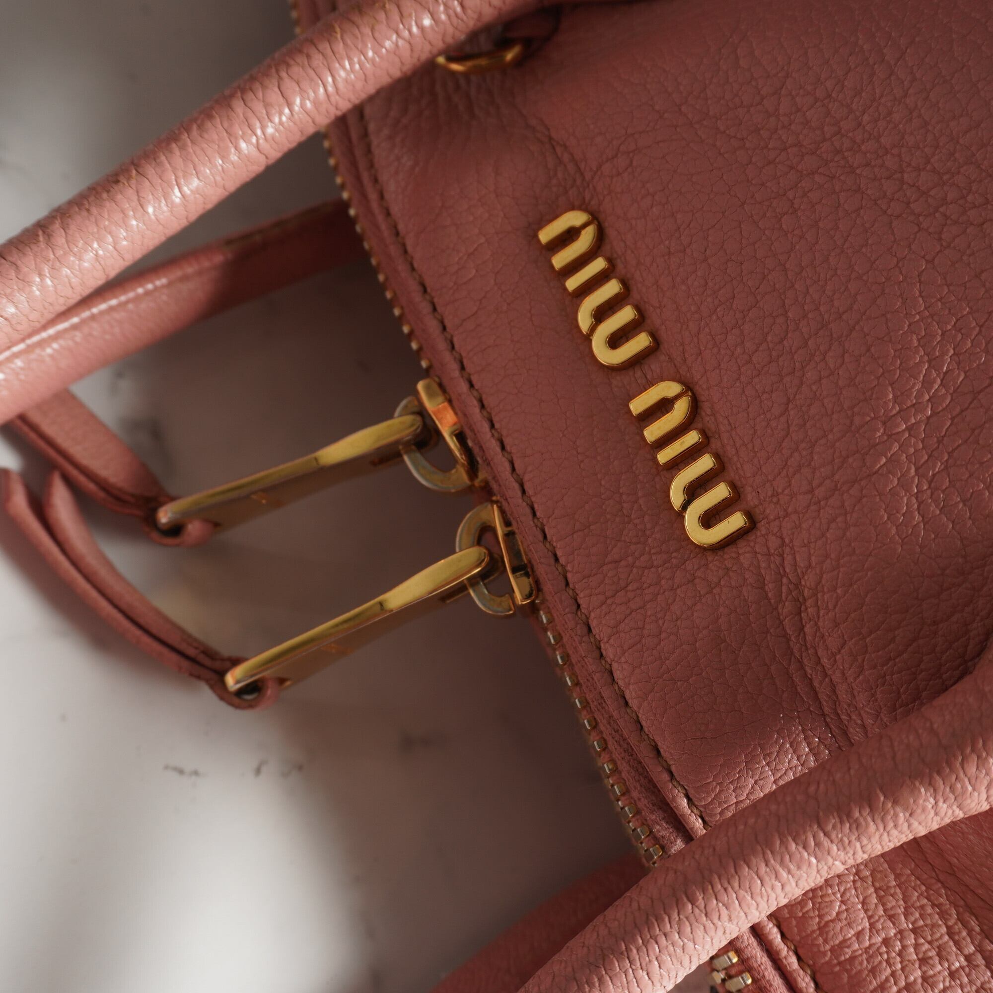 【miu miu】ミュウミュウ マドラスレザー ロゴ刻印ハンドバッグ pink