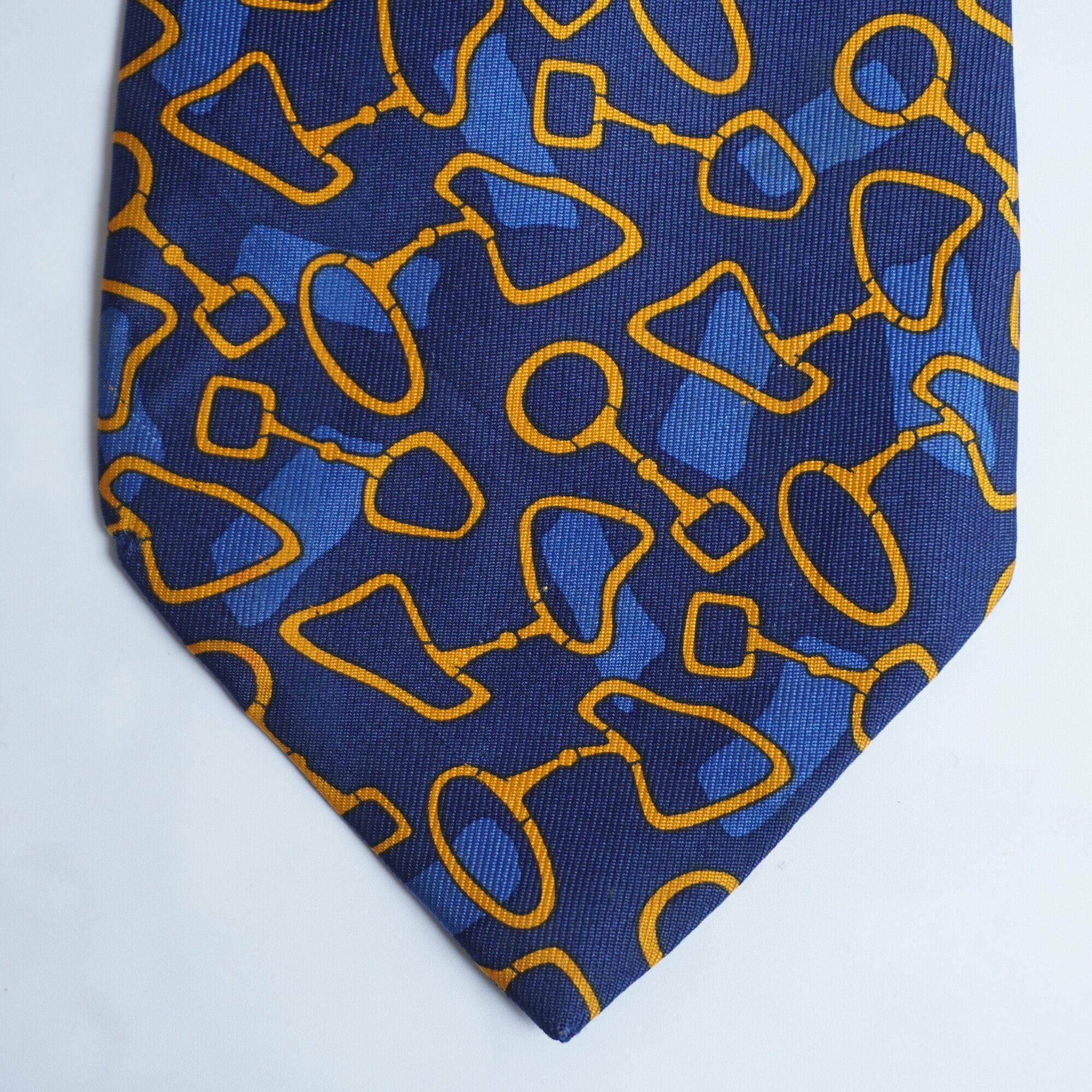 【GUCCI】グッチ ”イタリア製”シルク100%柄ネクタイ navy yellow