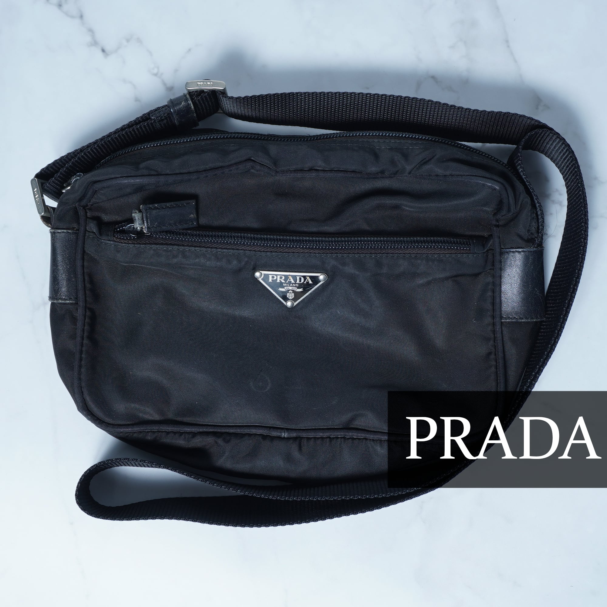【PRADA】プラダ "三角プレートロゴ” 高密度ナイロンショルダーバッグ black