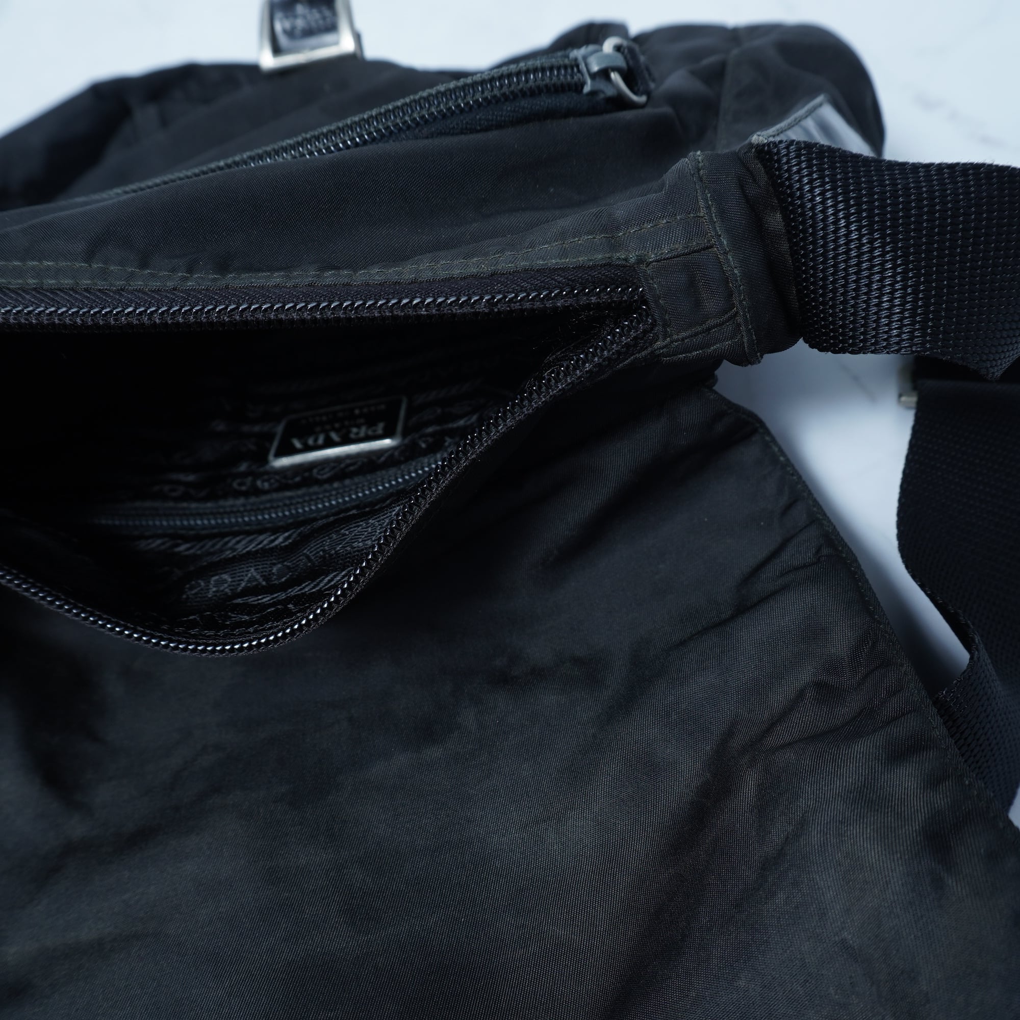 【PRADA】プラダ ”三角プレートロゴ” レザー切り替ナイロンショルダーバッグ black