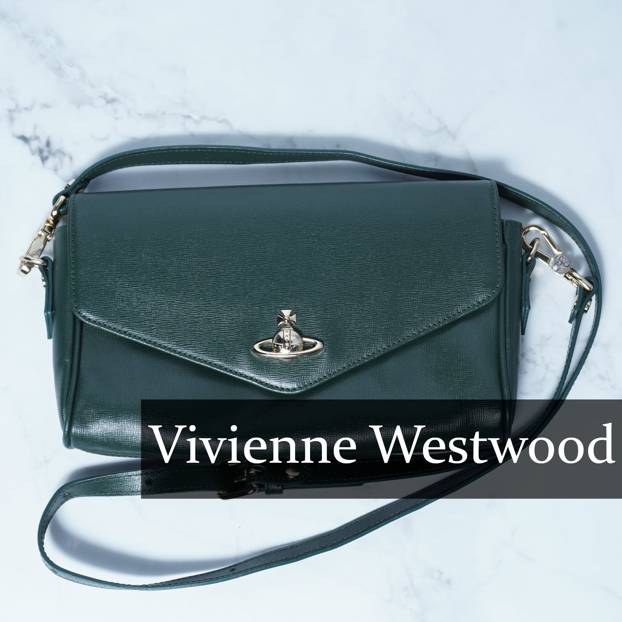 【Vivienne Westwood】ヴィヴィアンウエストウッド オーブロゴ シボ加工レザーショルダーバッグ green
