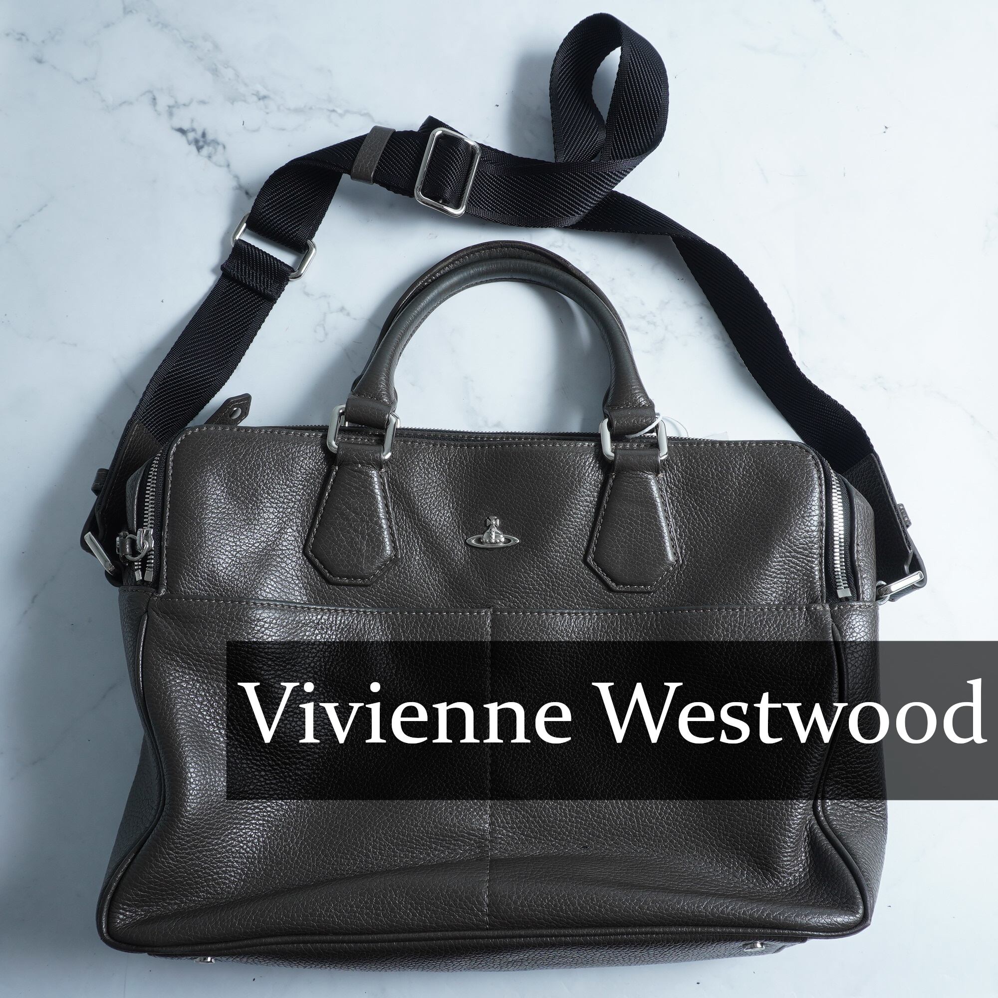 【Vivienne Westwood】ヴィヴィアンウエストウッド グレインレザー オーブモチーフビジネスバッグ brown