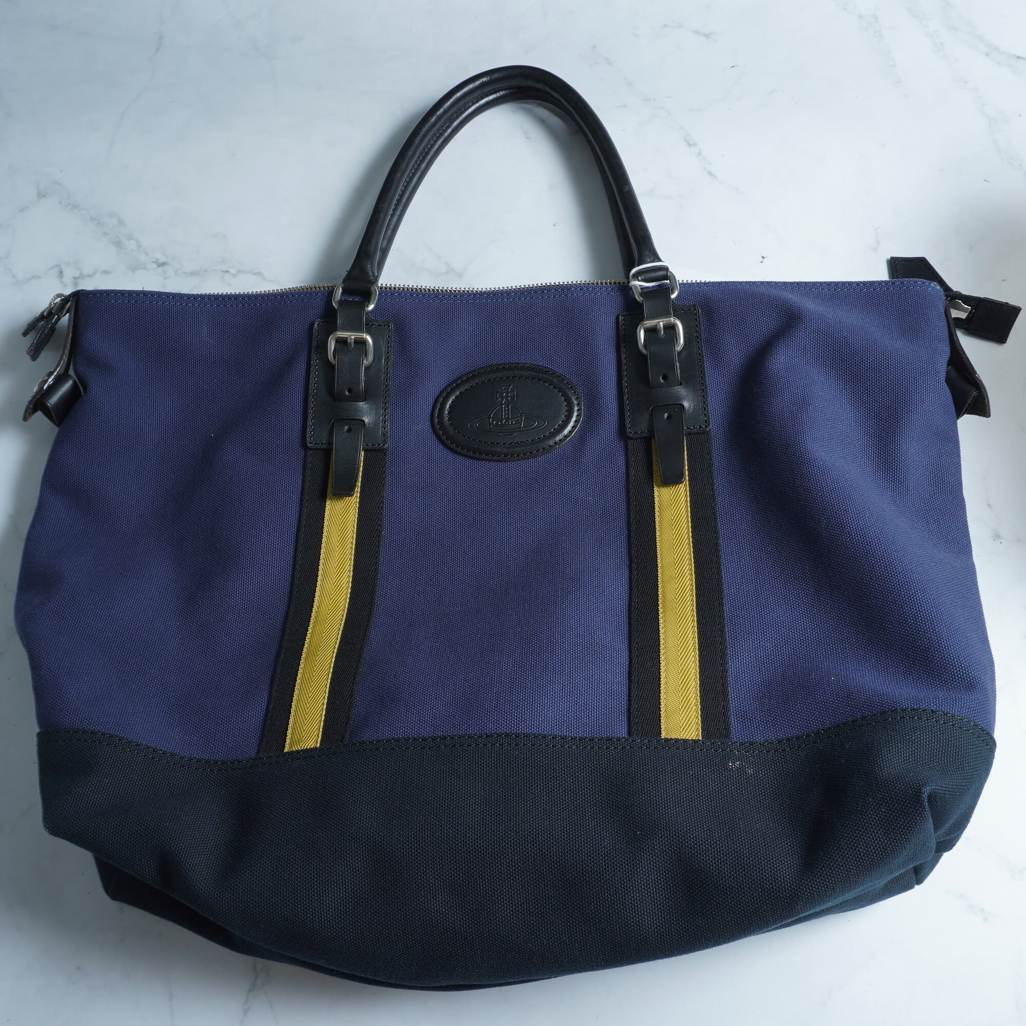 【Vivienne Westwood】ヴィヴィアンウエストウッドMAN レザー切替キャンバスショルダーバッグ navy