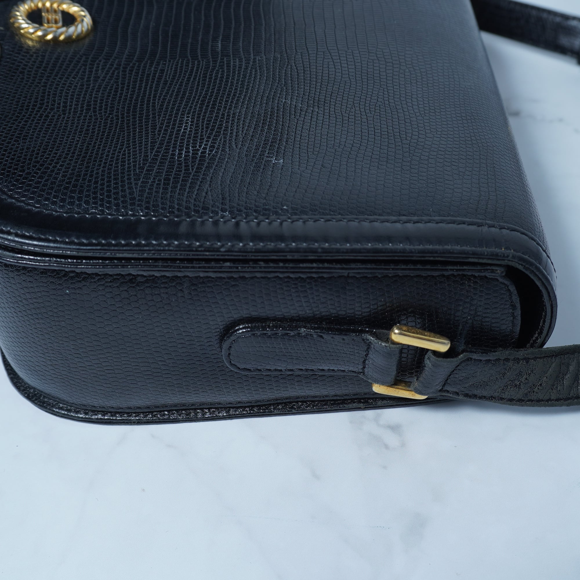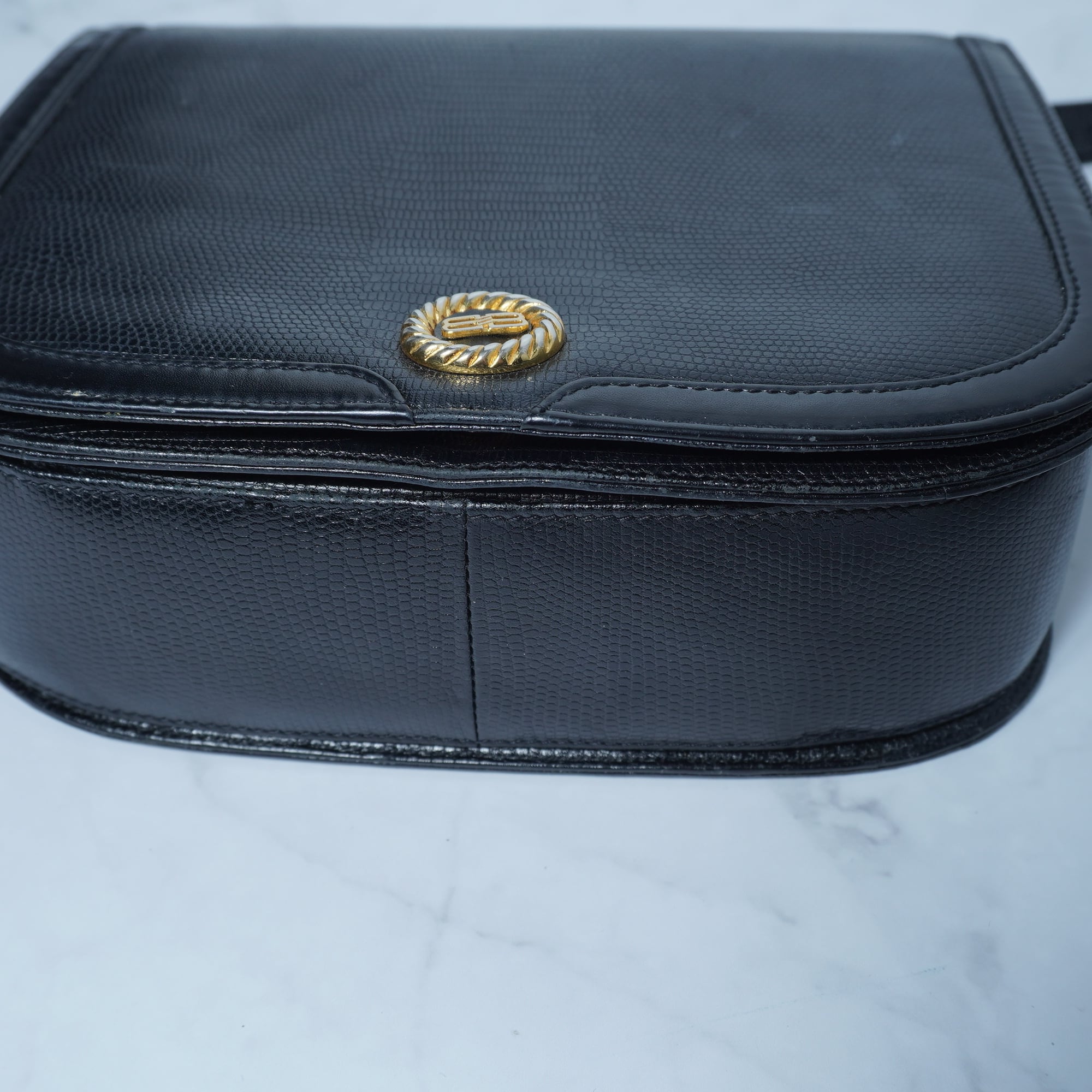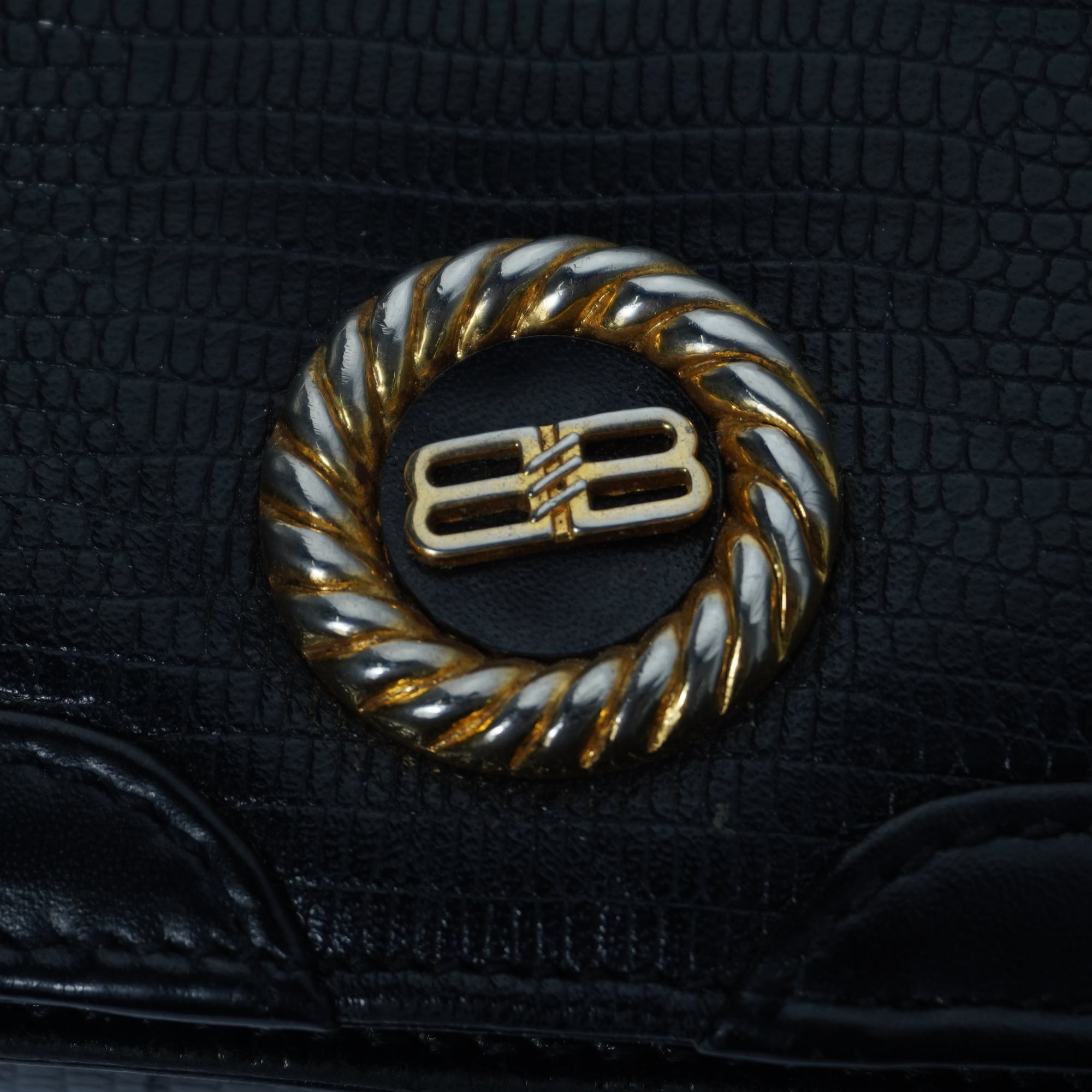 【BALENCIAGA】バレンシアガ ”ロゴ入” シボ加工レザーショルダーバッグ black