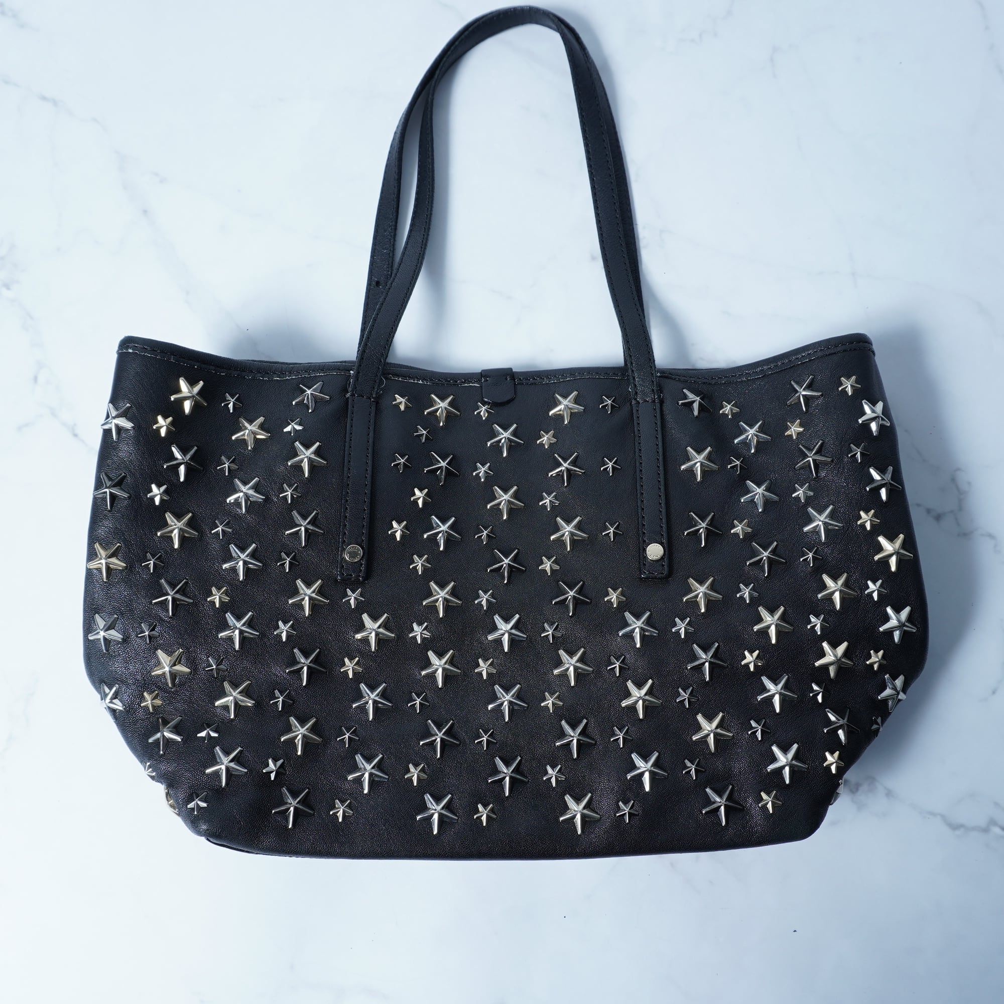 【JIMMY CHOO】ジミーチュウ ”ロゴ入” スタースタッズレザートートバッグ black