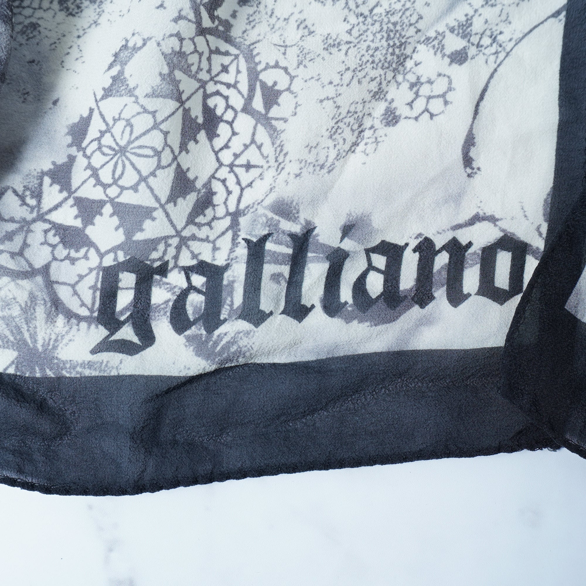 【John Galliano】ジョンガリアーノ "ARCHIVE" ”ロゴ入” スカルプリントスカーフ black&white