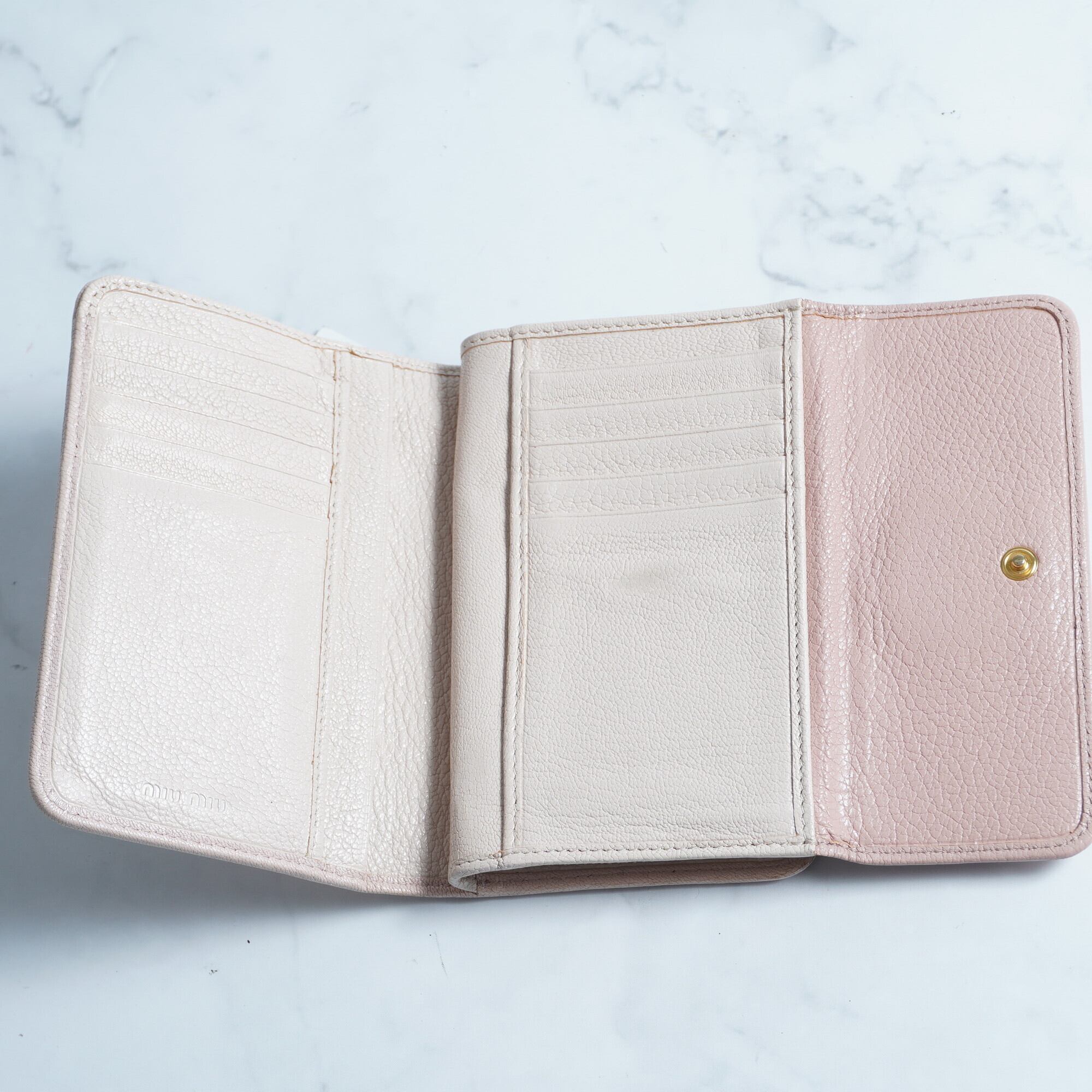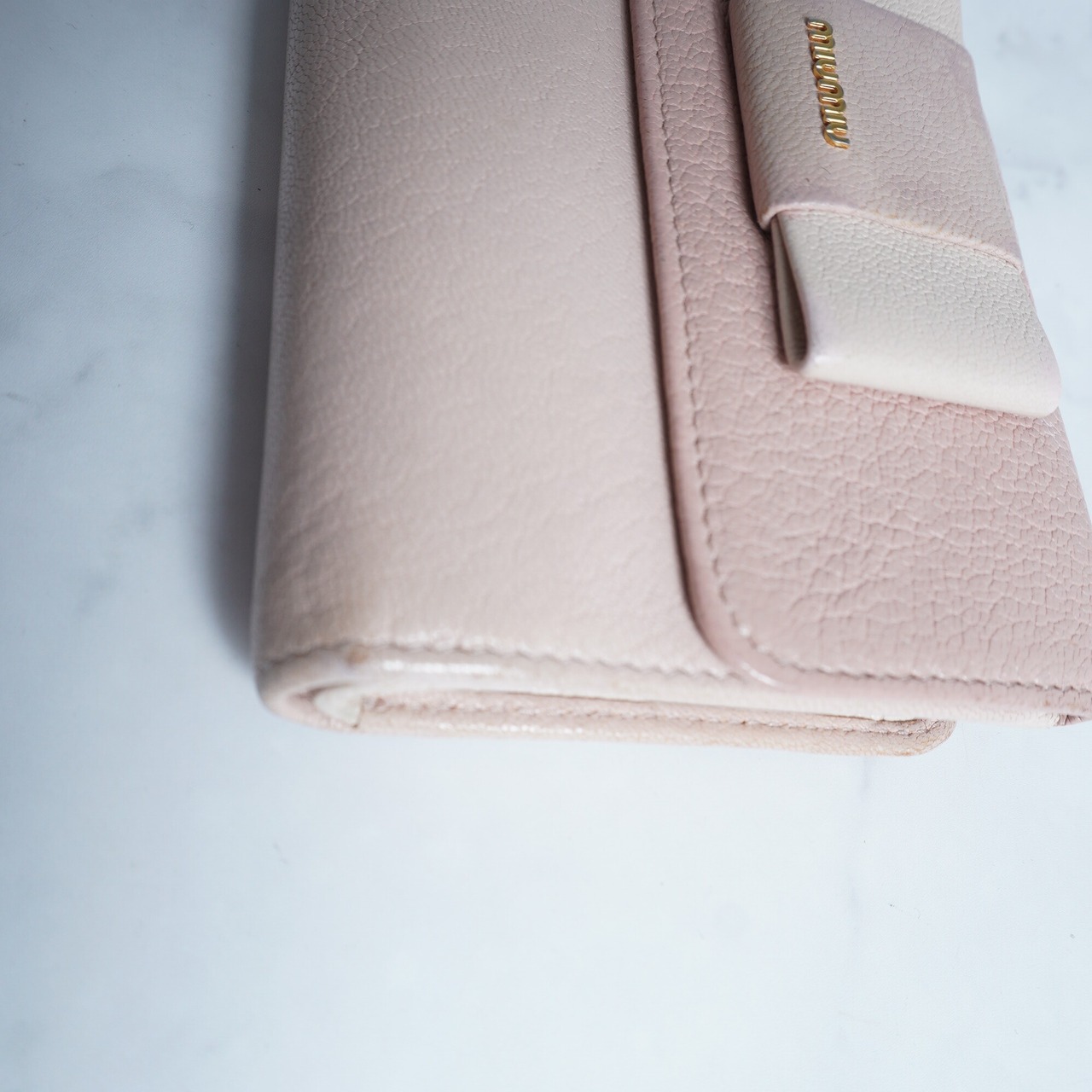 【miumiu】ミュウミュウ マドラス リボンデザイン三つ折りレザーコンパクト財布 pink