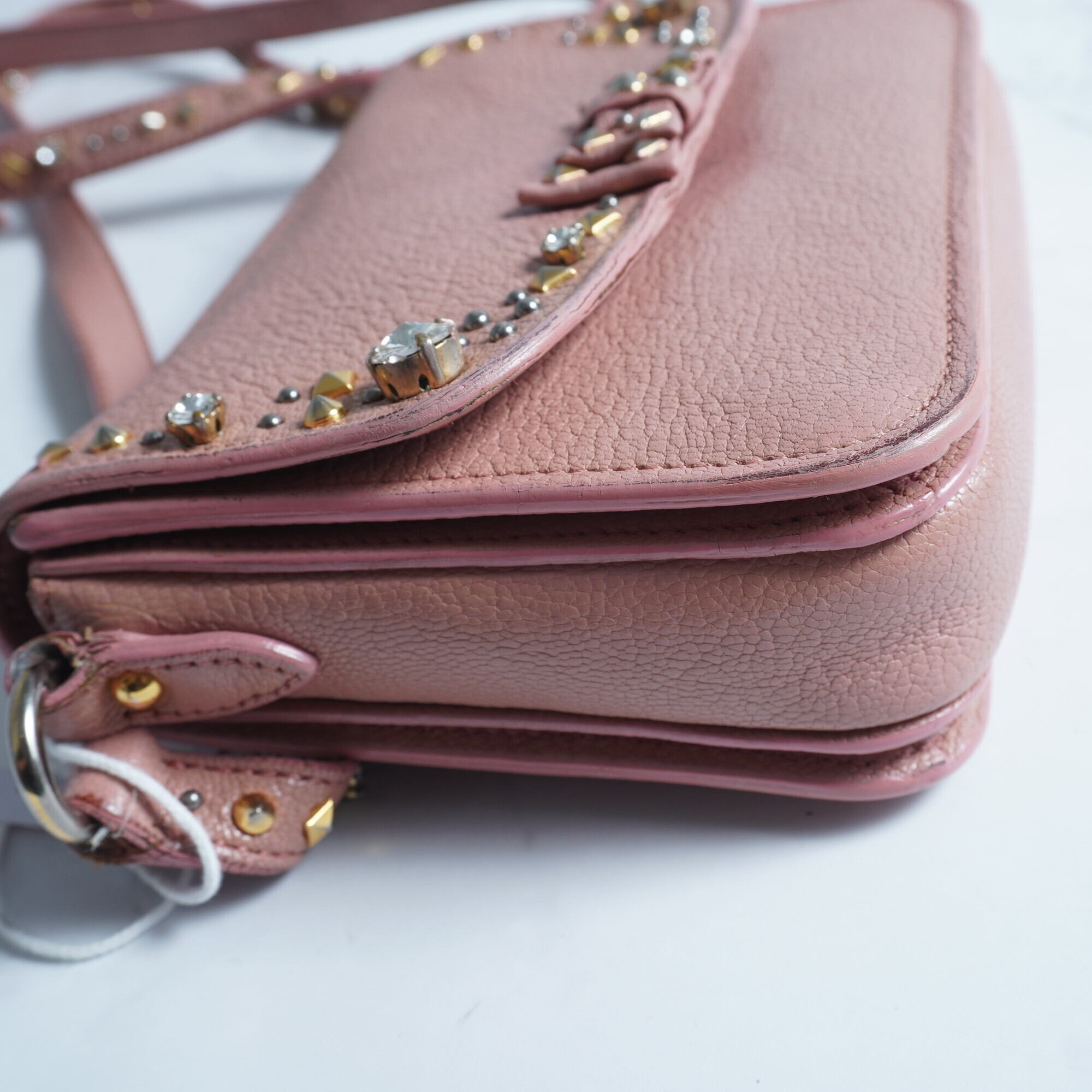 【miumiu】ミュウミュウ バレンタイン限定 マドラス ビジュー レザーショルダーバッグ pink