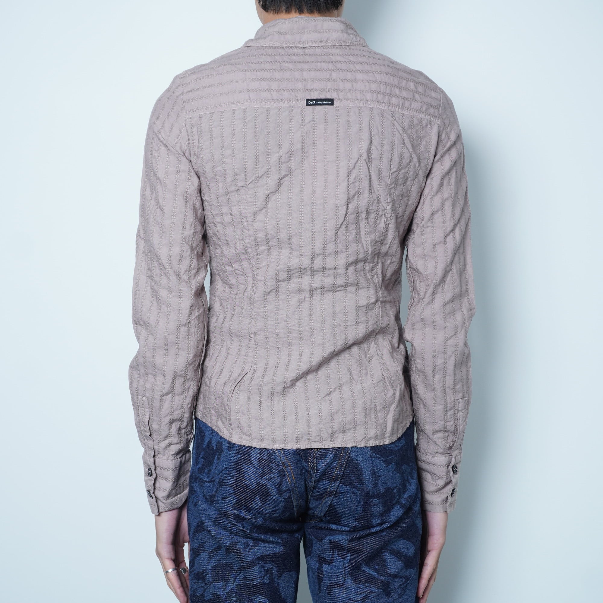 【DOLCE&GABBANA】ドルチェ&ガッバーナ チェーン刺繍ストライプコットンシャツ brown