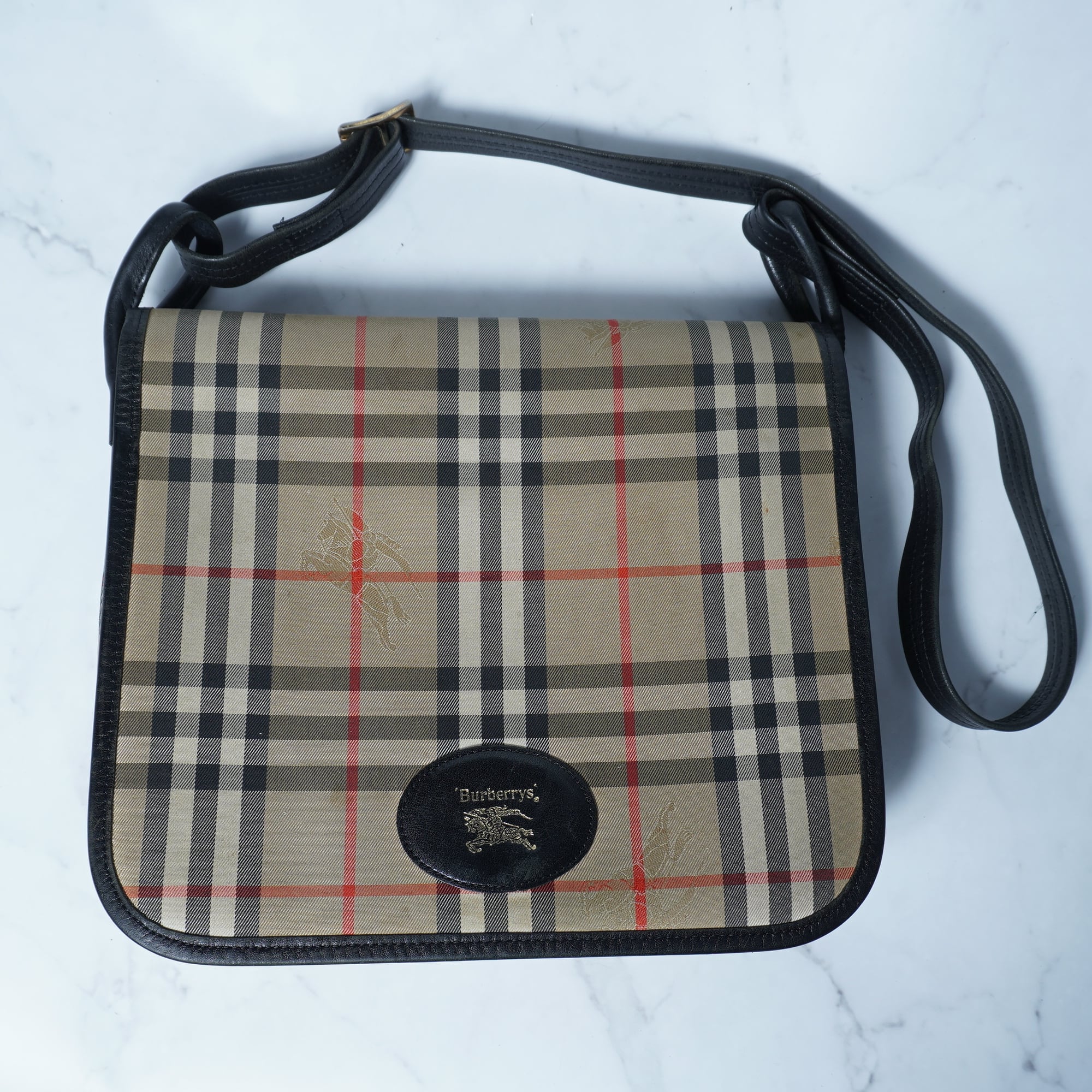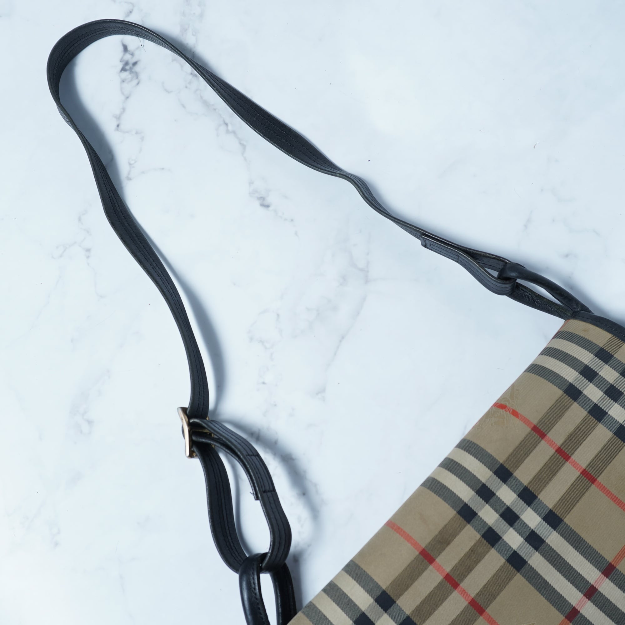 【BURBERRY】バーバリー ”ホースロゴノヴァチェック”レザー切り替えショルダーバッグ beige