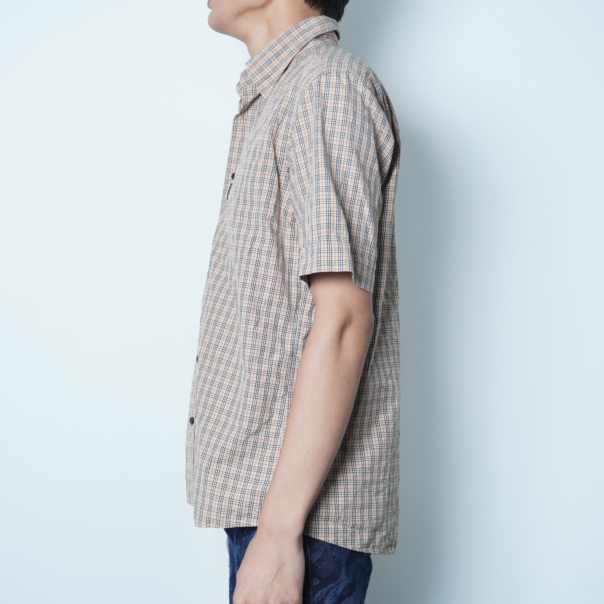 ・洗練されたデザインの【BURBERRY】バーバリーブラックレーベル カラーホース刺繍ノヴァチェックコットンHSシャツ beige
