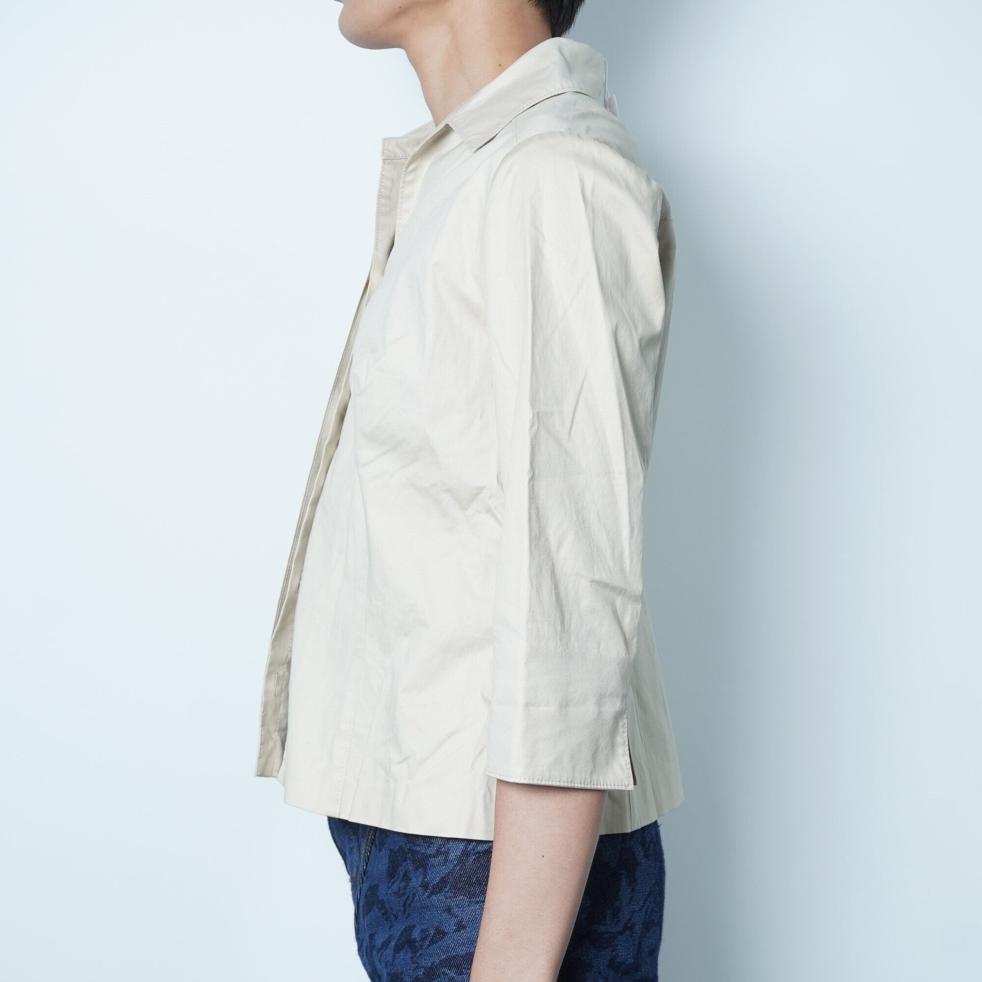 【BURBERRY】バーバリーロンドン ボタンロゴ刻印プレーン比翼シャツ beige
