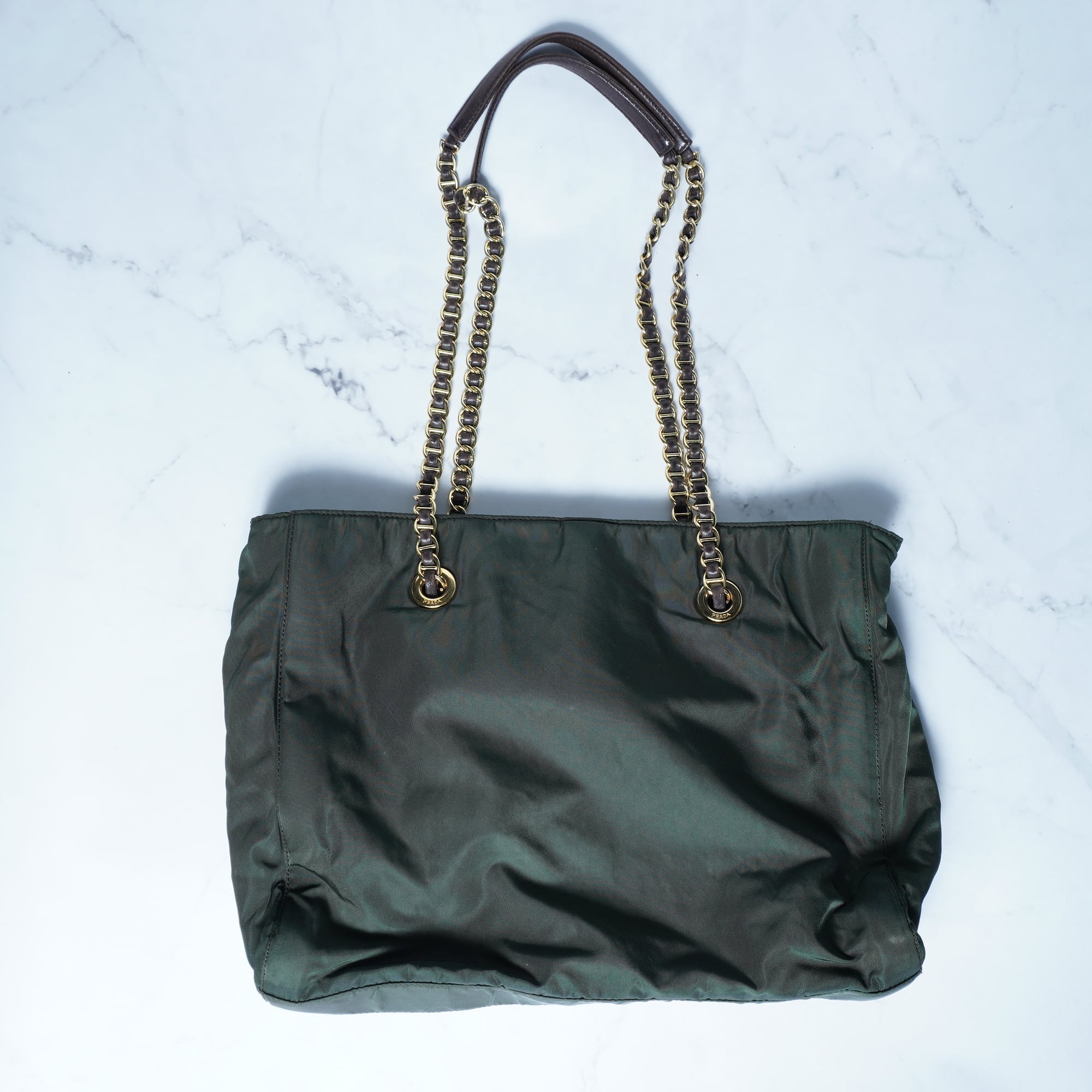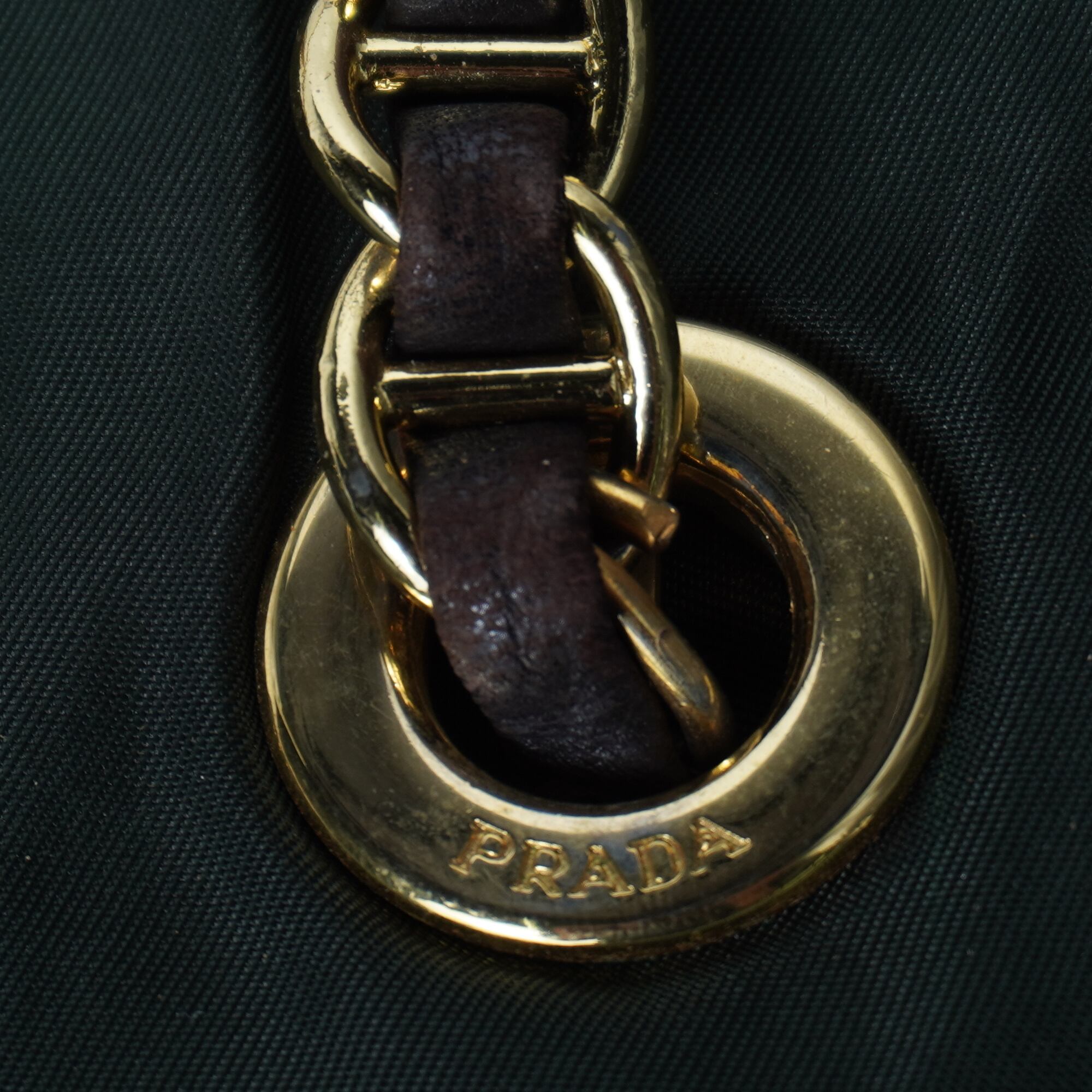 【PRADA】プラダ "三角ロゴプレート" レザーゴールドチェーンナイロンショルダーバッグ khaki