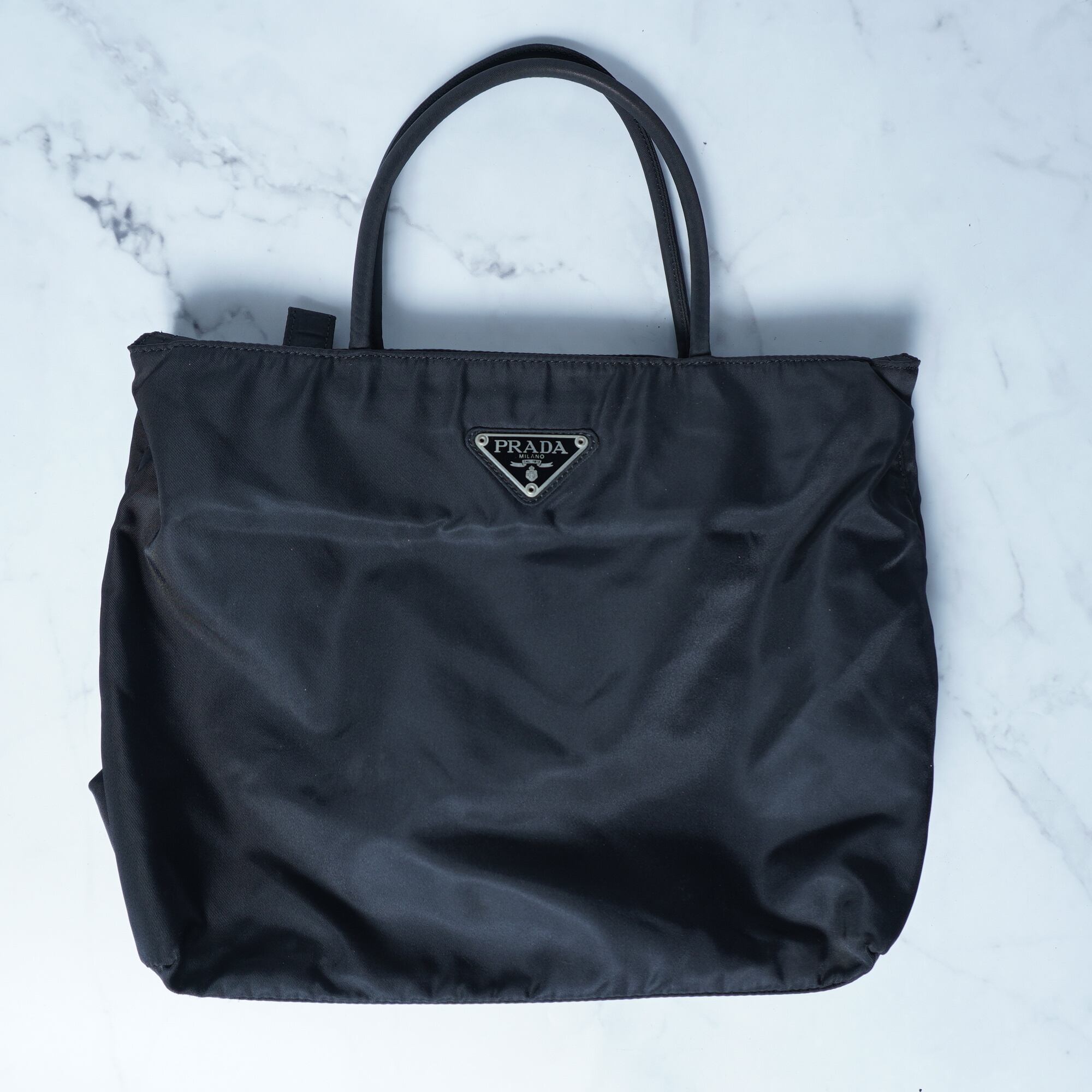 【PRADA】プラダ "三角ロゴプレートロゴ" ナイロンハンドバッグ black