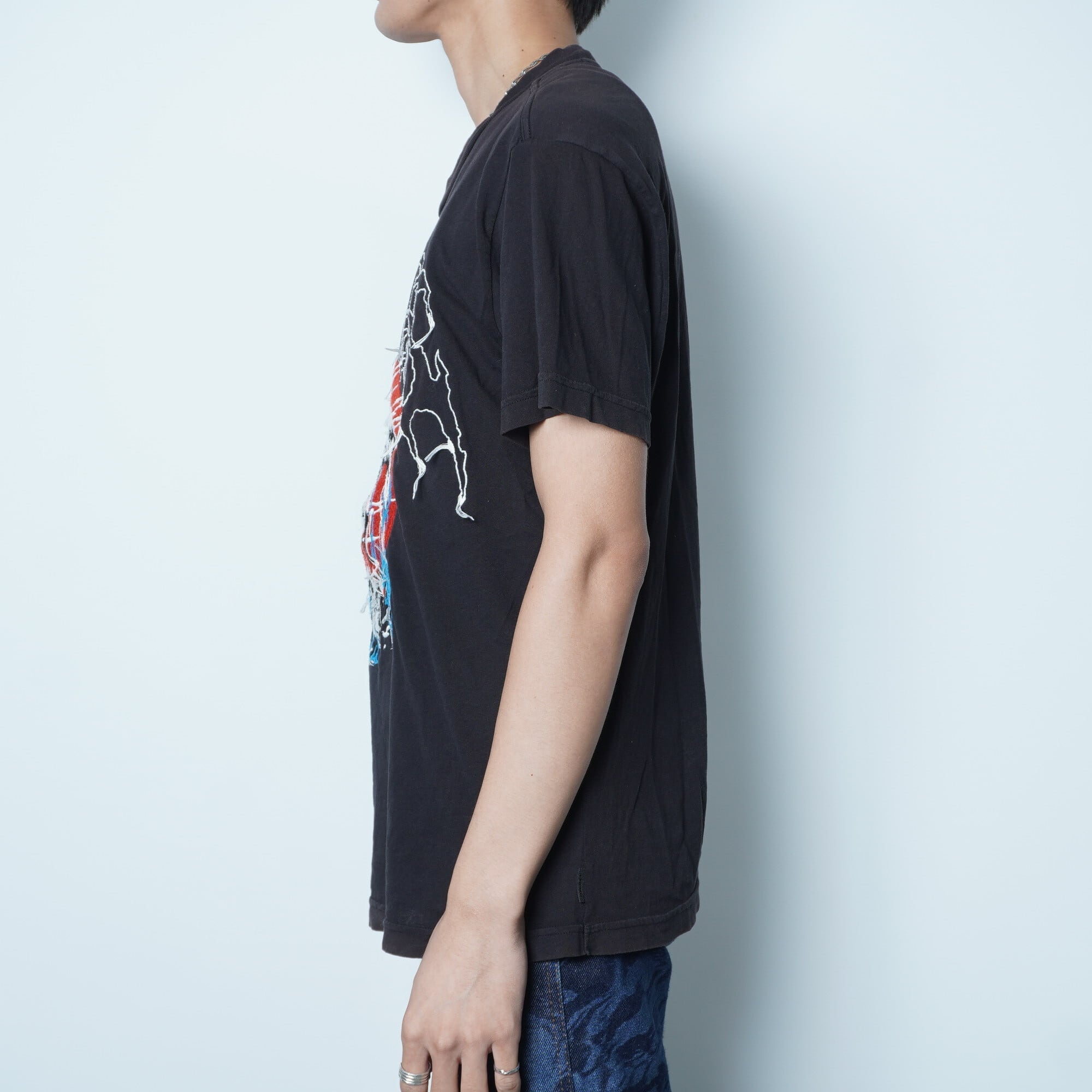 【DIESEL】ディーゼル 日の丸×鶴スカルロゴ刺繍TEE faded black