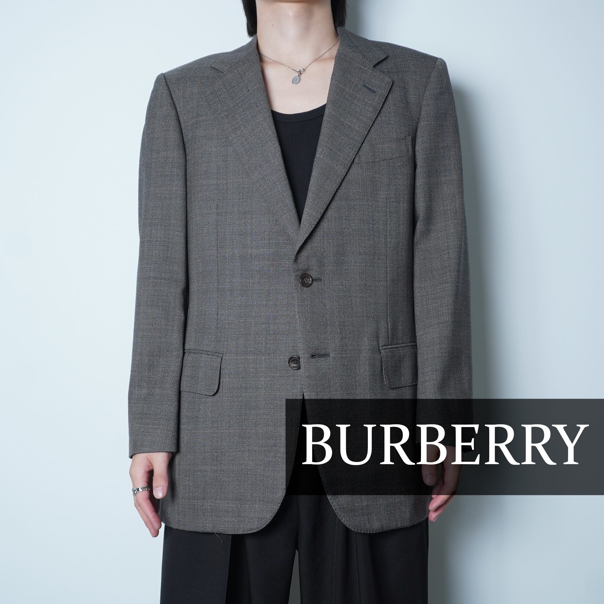 【BURBERRY】バーバリー シャドーチェック ウール100%2Bシングルジャケット gray