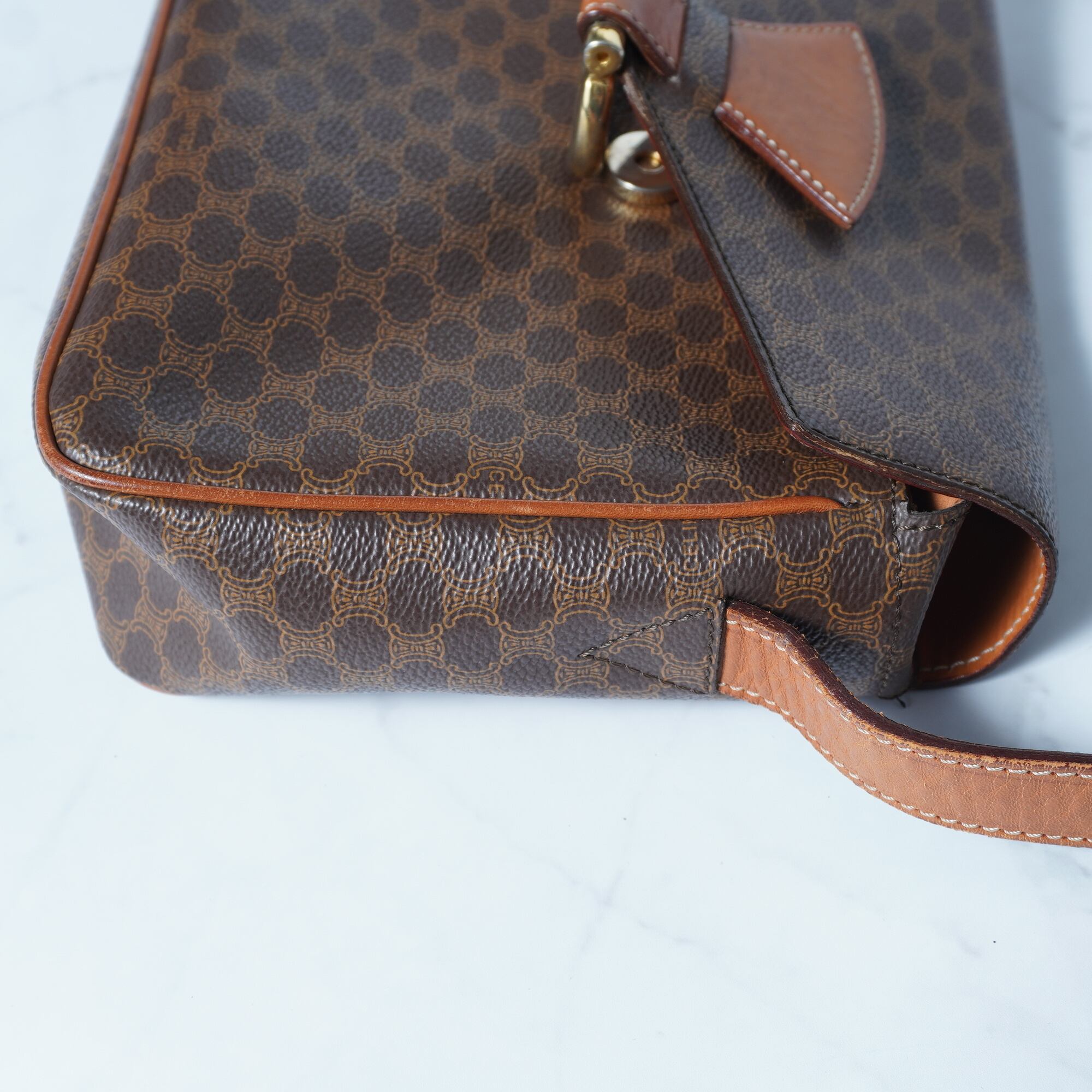 【CELINE】セリーヌ "マカダム” ロゴ金装飾レザーショルダーバッグ brown