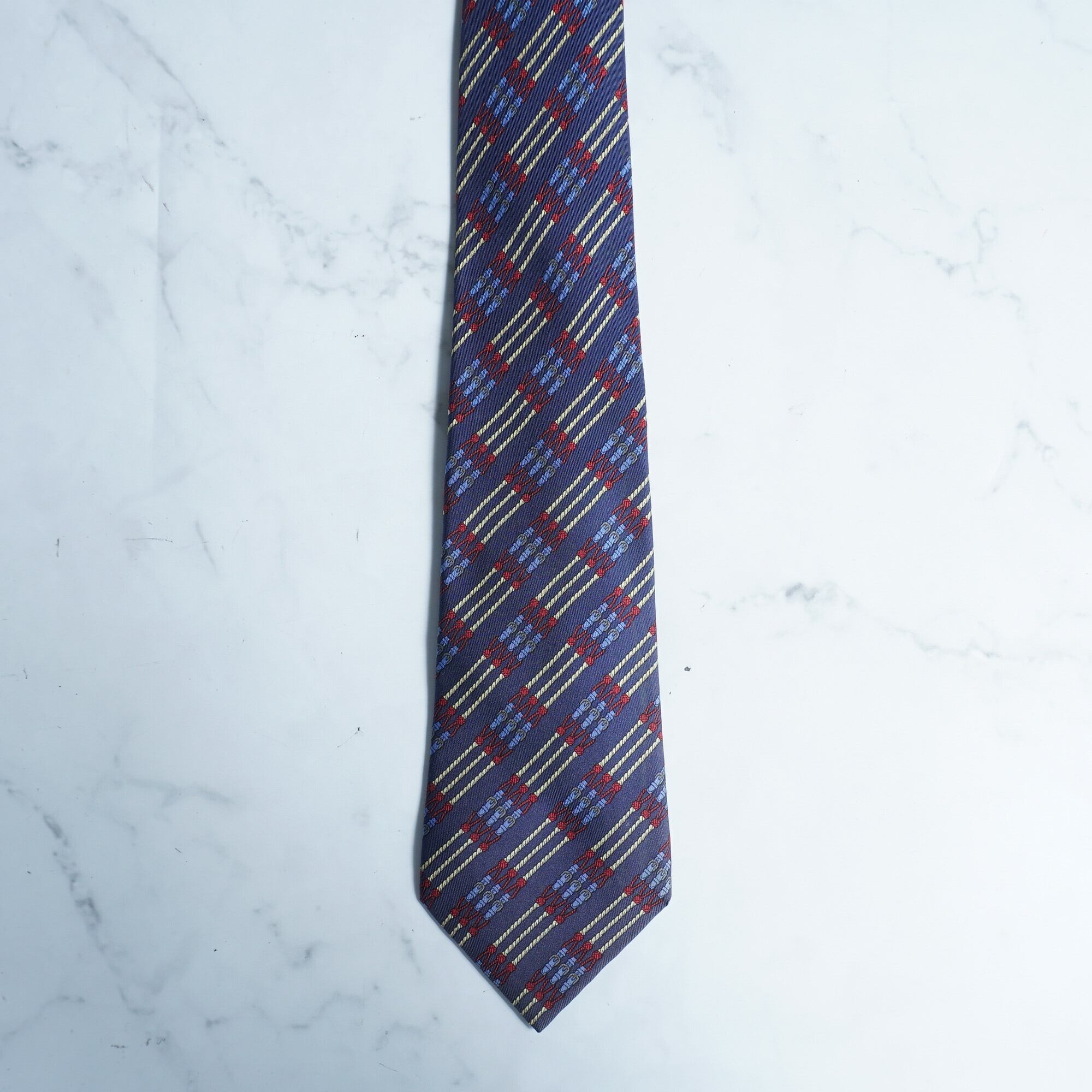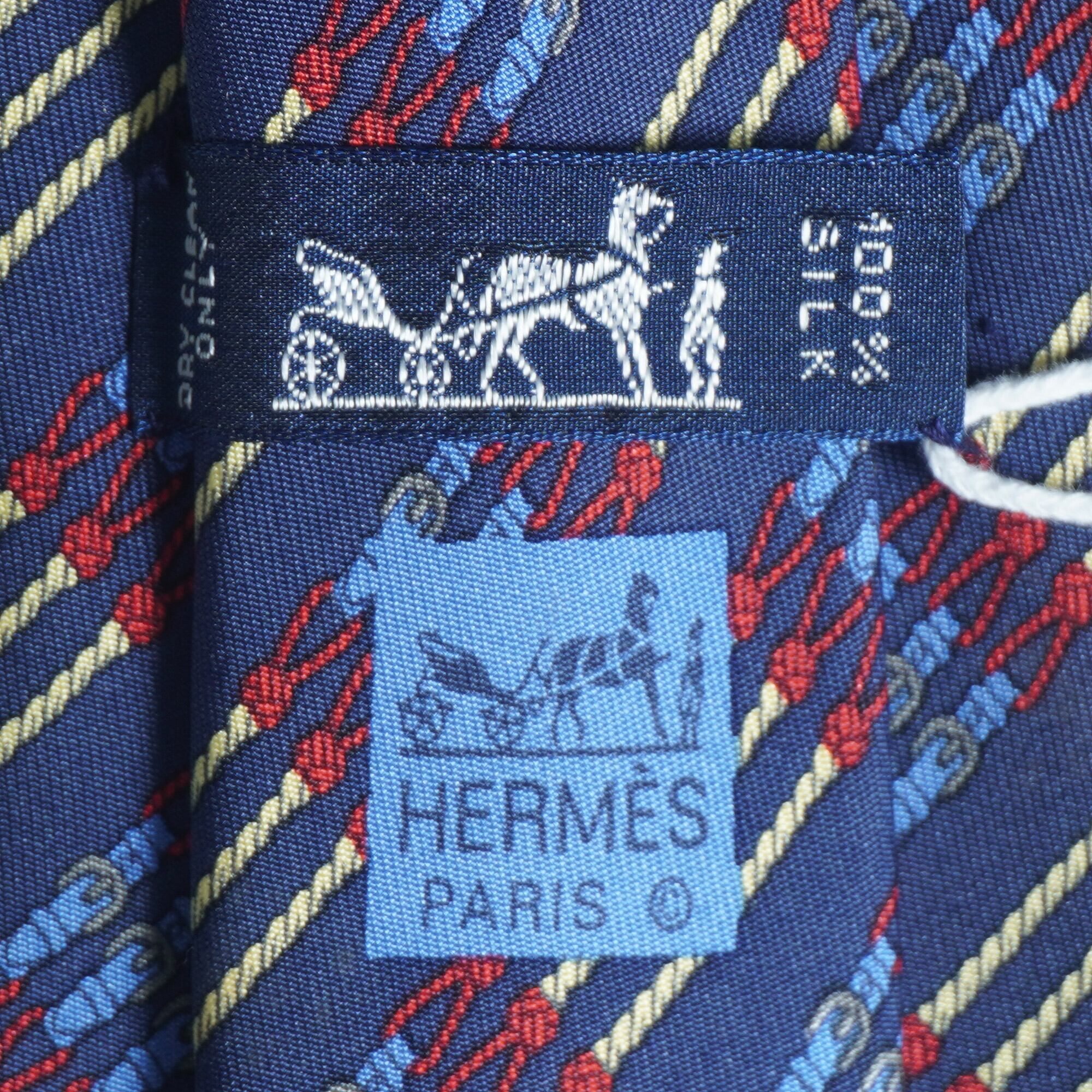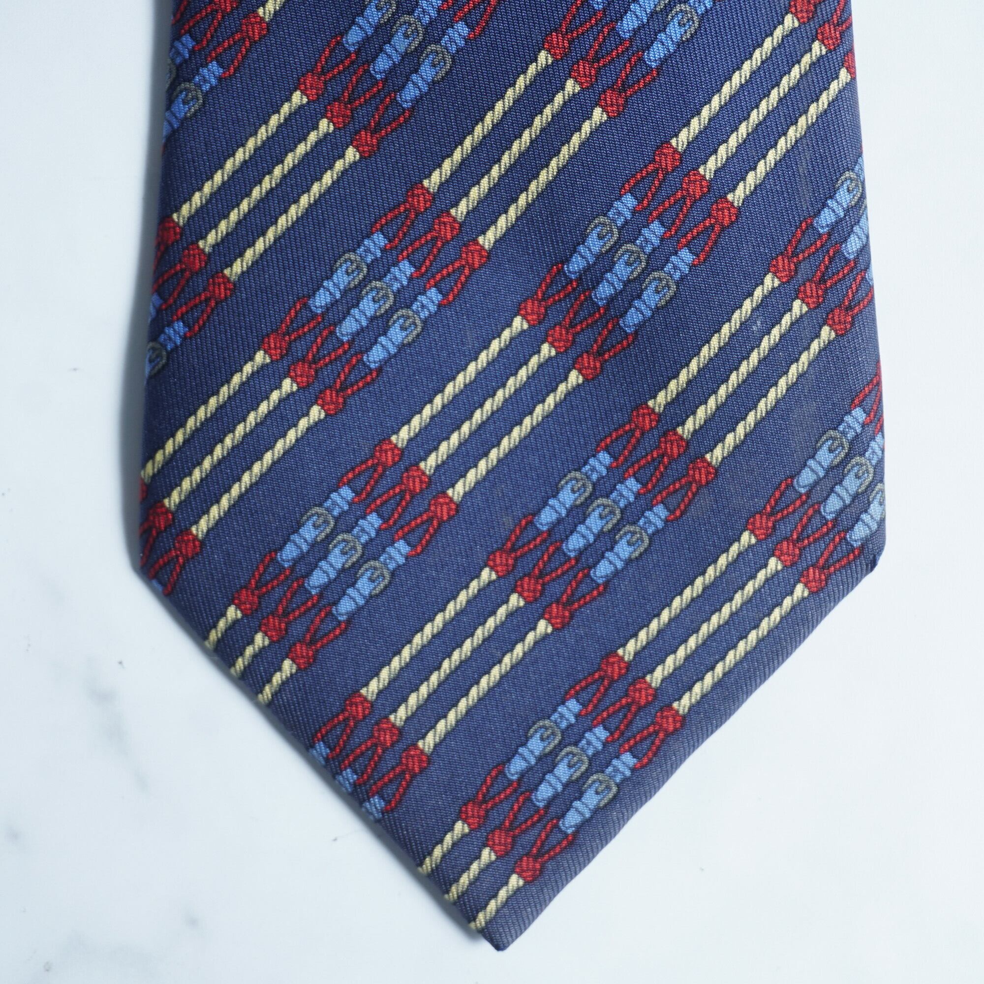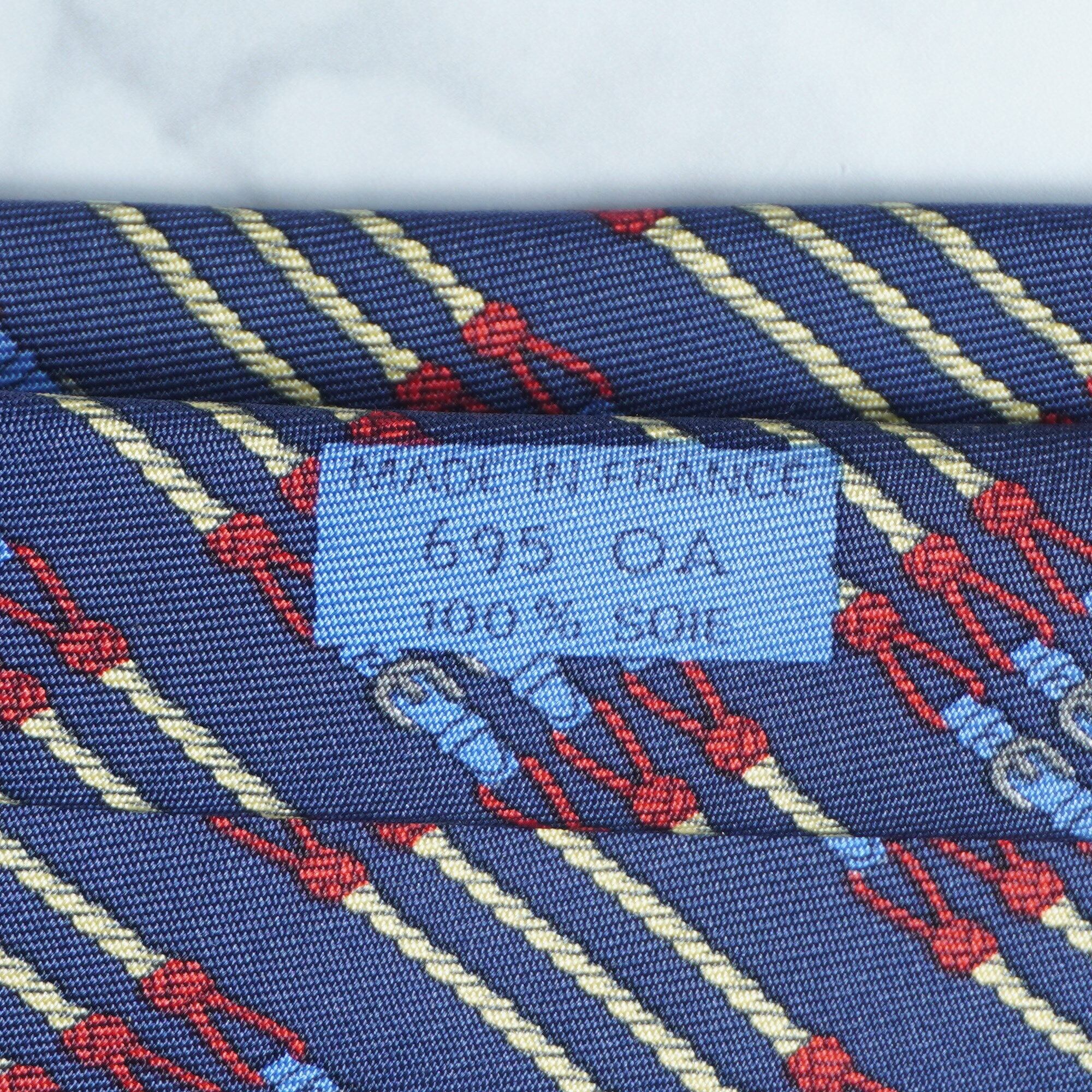 【HERMES】エルメス フランス製 NAVY 100%シルク ロープパターン