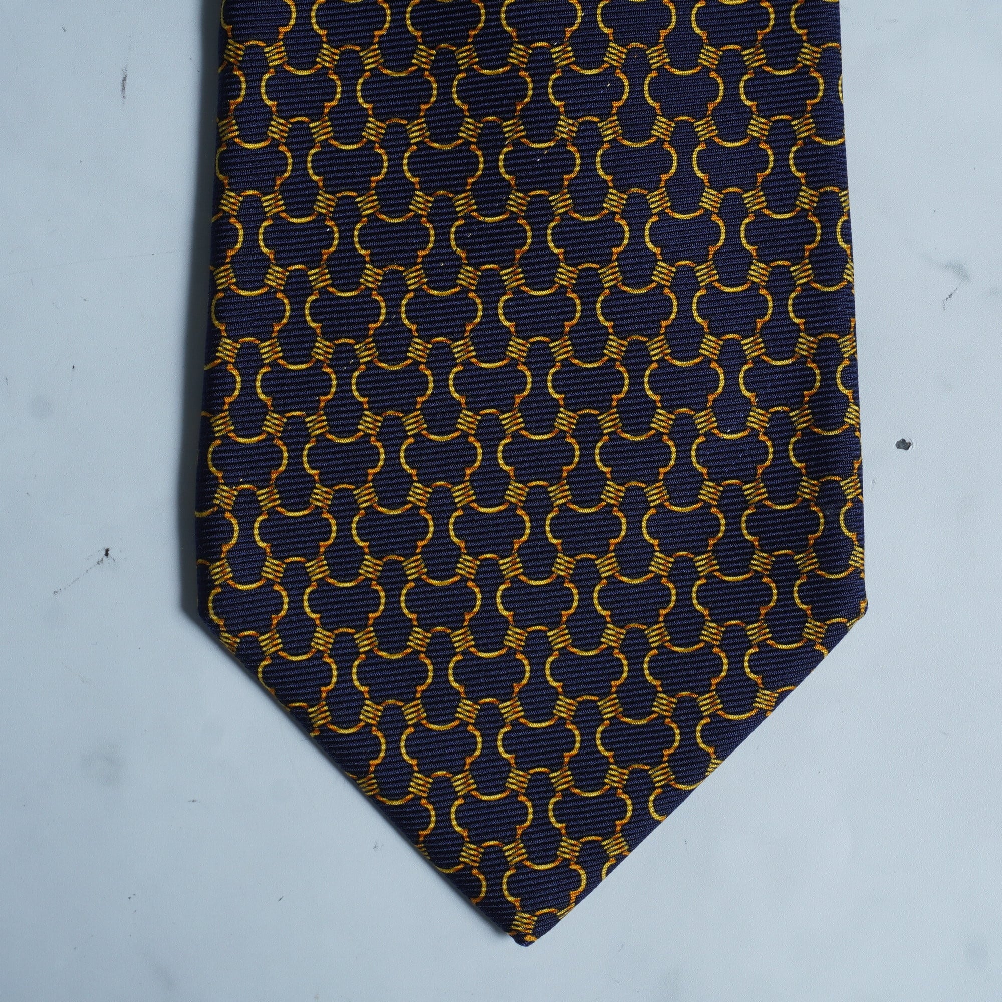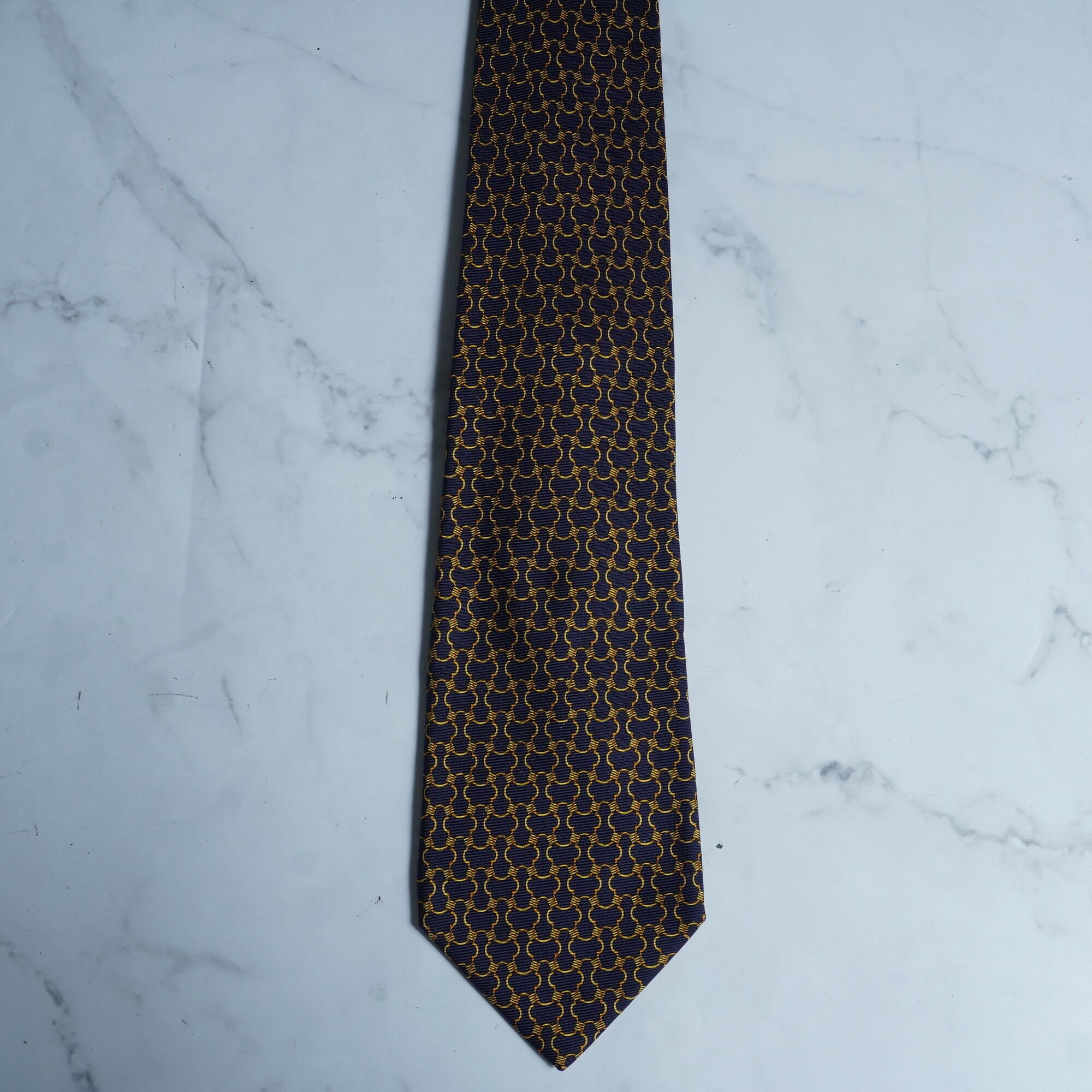 【Christian Dior】クリスチャンディオール フランス製 NVY GLDチェーンパターン