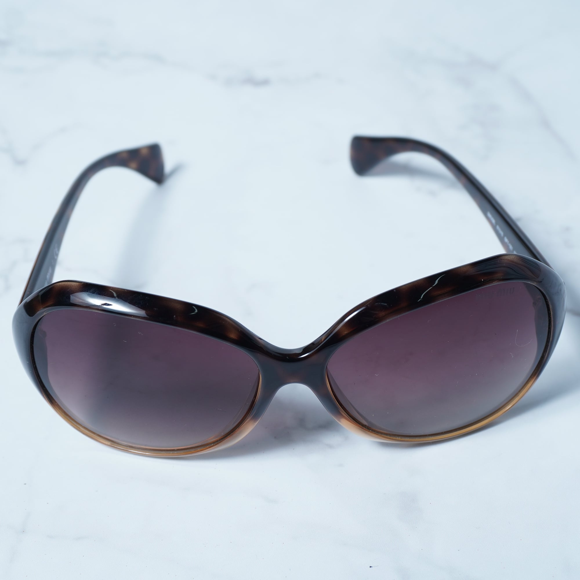 【miumiu】ミュウミュウ "ロゴ入" ブラウングラス鼈甲柄サングラス brown