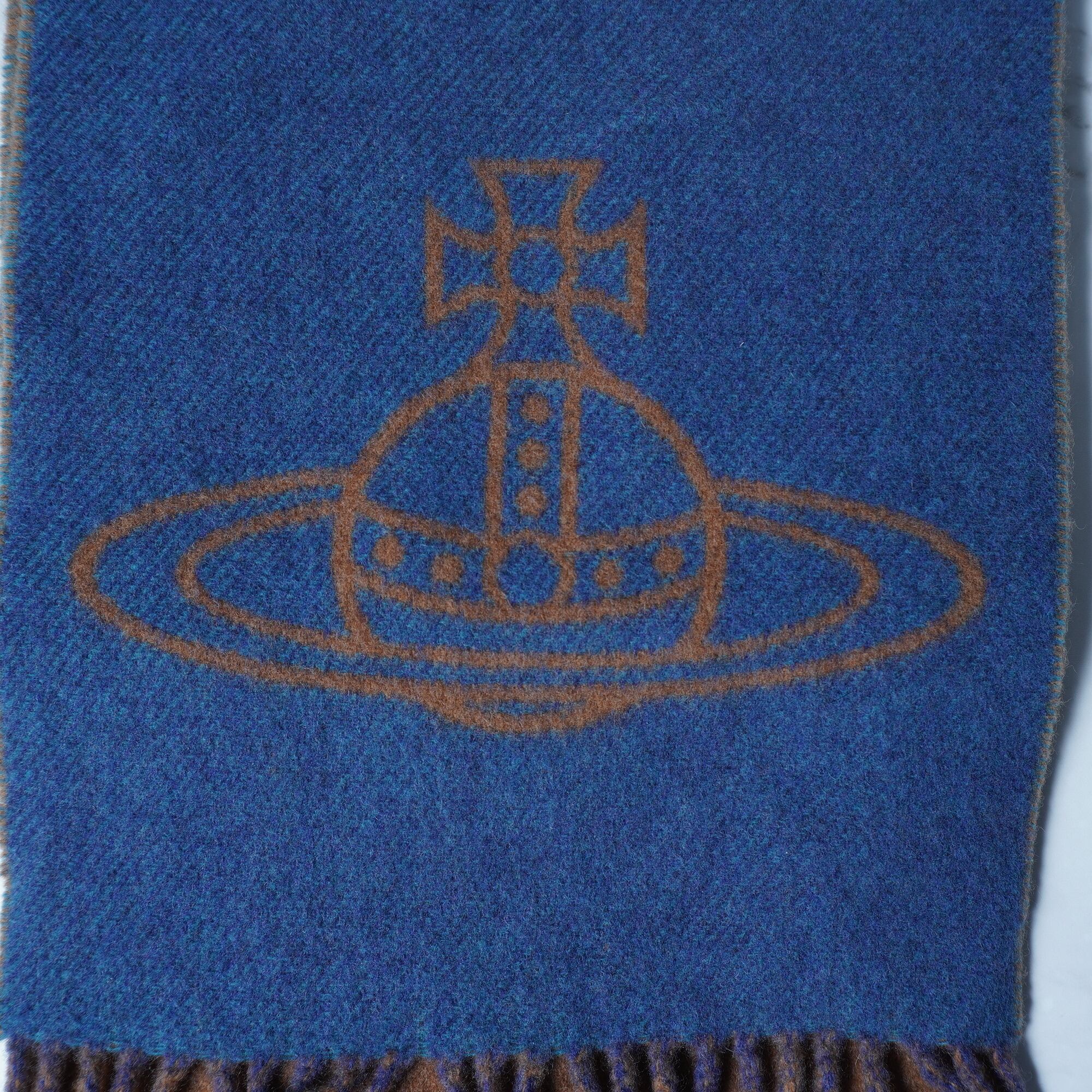 【Vivienne Westwood】ヴィヴィアンウエストウッド オーブロゴ ウール100%マフラー blue&brown